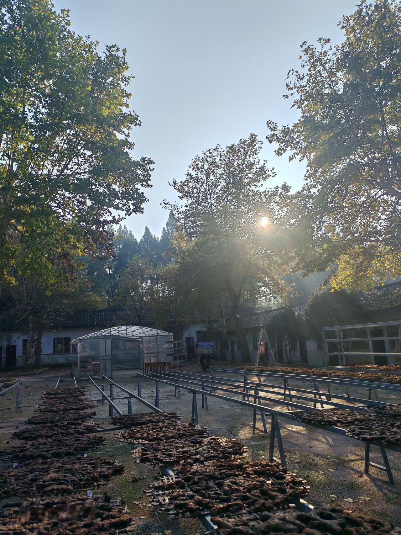 早晨的第一缕阳光洒在九蒸九晒黄精上,小院里满是黄精的芬香,白天太阳晒,晚上露水露