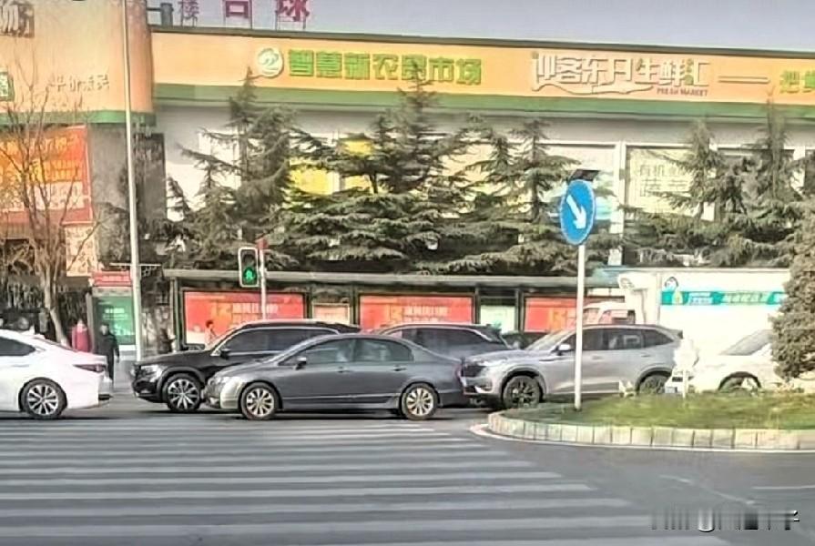 早上开车打这经过,绿灯时看到马路对过,车都在那儿停着,蛄蛹不动了(图三)。