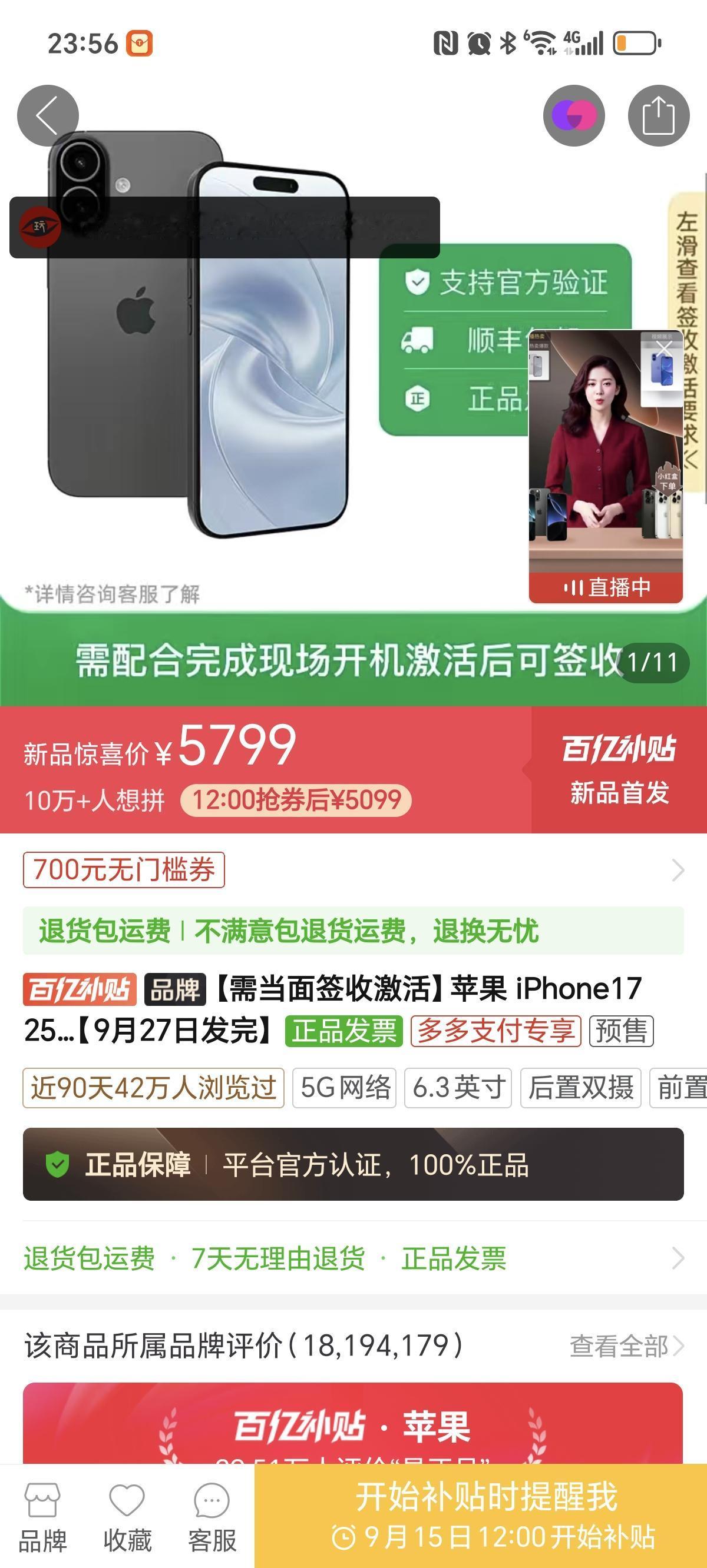 iPhone17补贴后售价4999元,是你,你会买吗?多多上,现在的家有5799