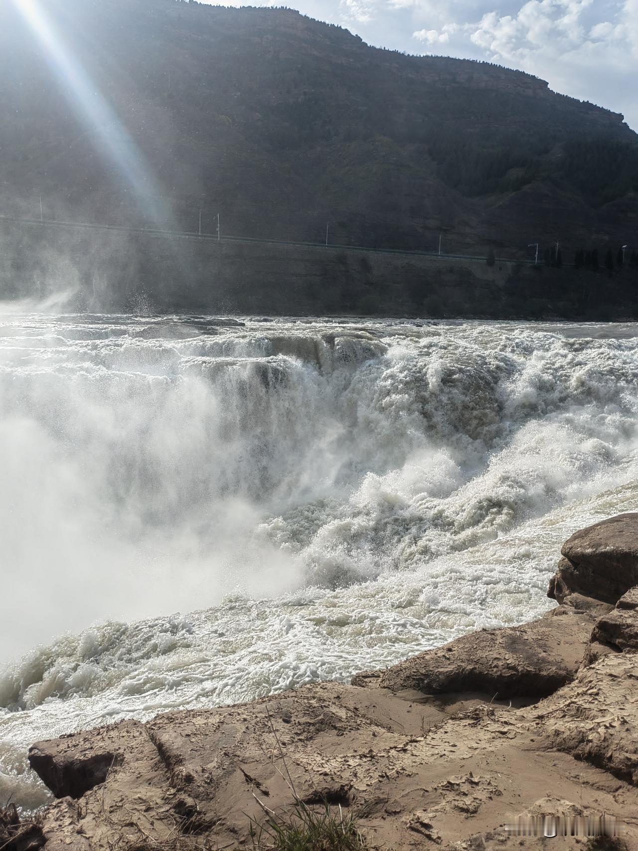 此时正值桃花汛期,在山西临汾一侧的黄河壶口,雾絮纷飞,宛如片片桃花扬起。浩荡之水倾泻而下,尽数注入壶内。此刻,游人们仿佛置身于5D影院,坐在动感座椅上,感受着环境特效营造的立体画面。