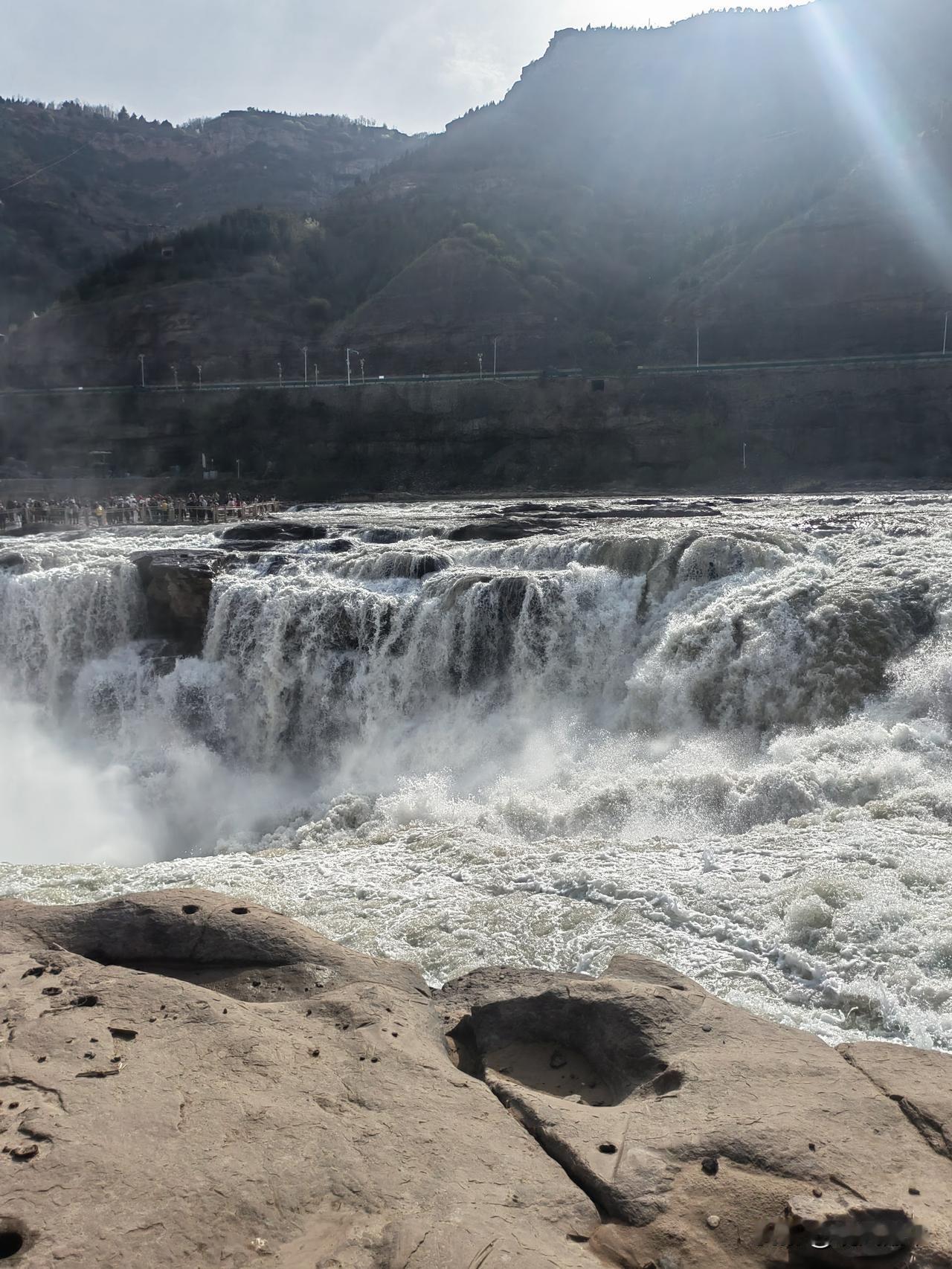 面对如此盛大恢宏的场景,磅礴的气势与渺小的我形成鲜明的对比。每一个到访此处的人都在思索,好似一群好学上进的学生,聚在一起,剖析一段文字,解读现代汉语语法,从中找出各自的位置。主谓宾定状语——壶口瀑布、桃花汛、你我他,究竟谁是主语谁是谓语呢?