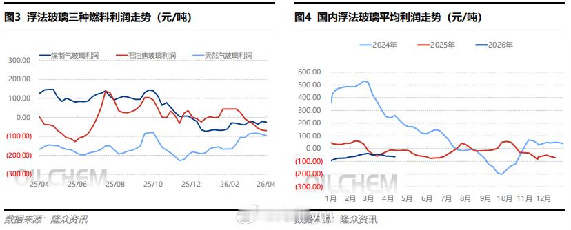 4月10日-4月16日,据隆众资讯生产成本计算模型,其中以天然气为燃料的浮法玻璃周均利润-96.37元/吨,环比下降6.42元/吨;以煤制气为燃料的浮法玻璃周均利润-25.41元/吨,环比下降3.86元/吨;以石油焦为燃料的浮法玻璃周均利润下降2.86元/吨至-70.33元/吨。(隆众资讯)玻璃期货