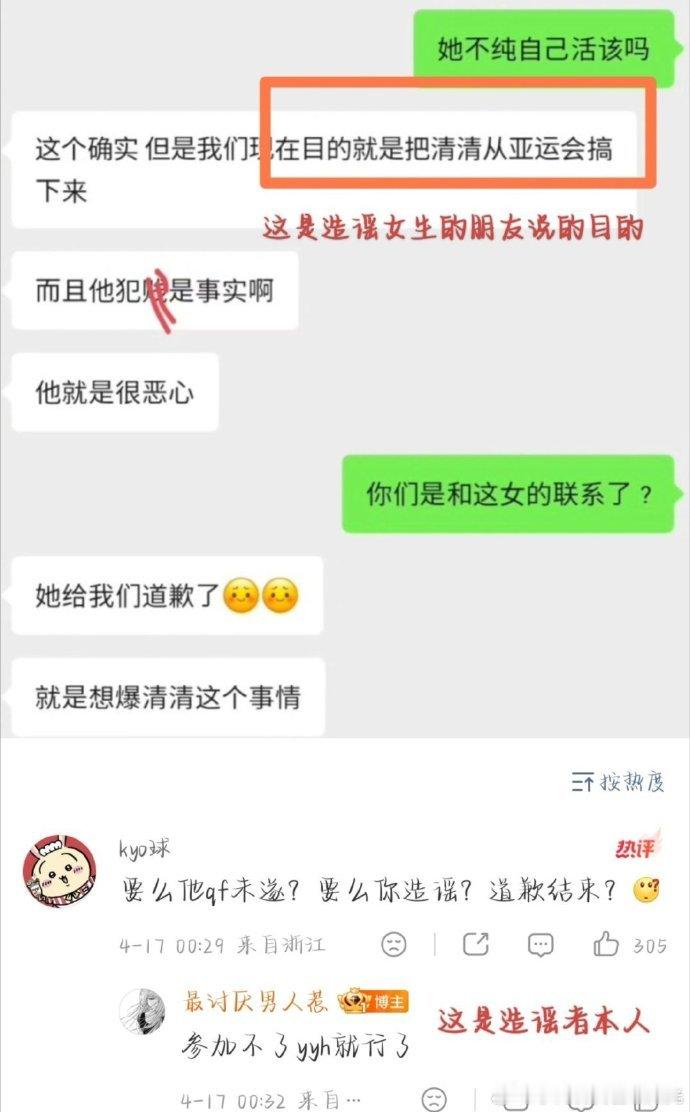 最讨厌男人惹 清清曝清清性骚扰 从网传截图中女生的回复来看,她的目的不在于指控清清骚扰是真是假和能不能受到法律制裁,只要能够损害到清清的声誉让他参加不了亚运会就行了。所以哪怕没有确凿的证据也要在网上指控,目的是毁人而不是验证骚扰事实。不知女子和朋友的目的能达到吗?