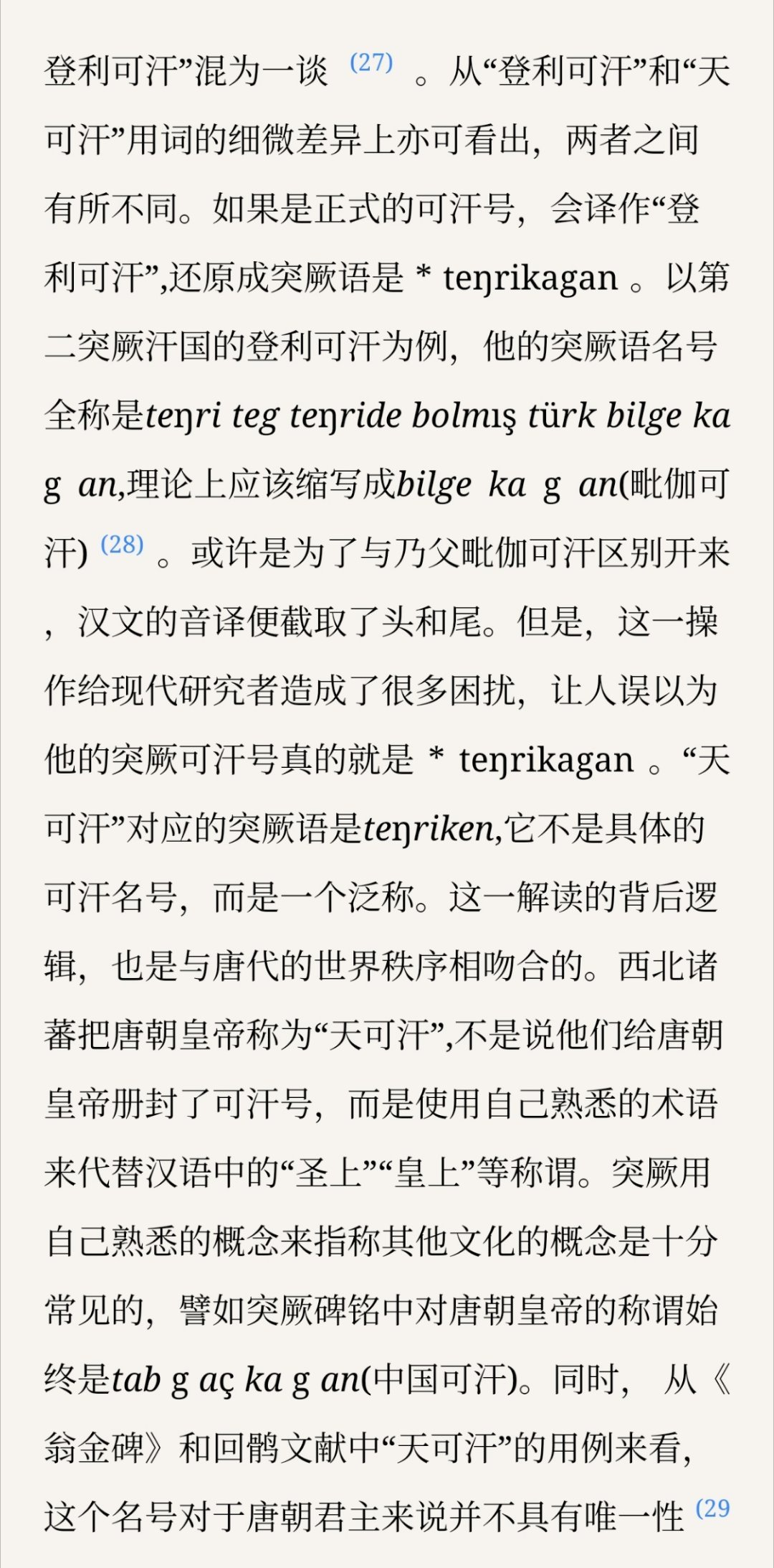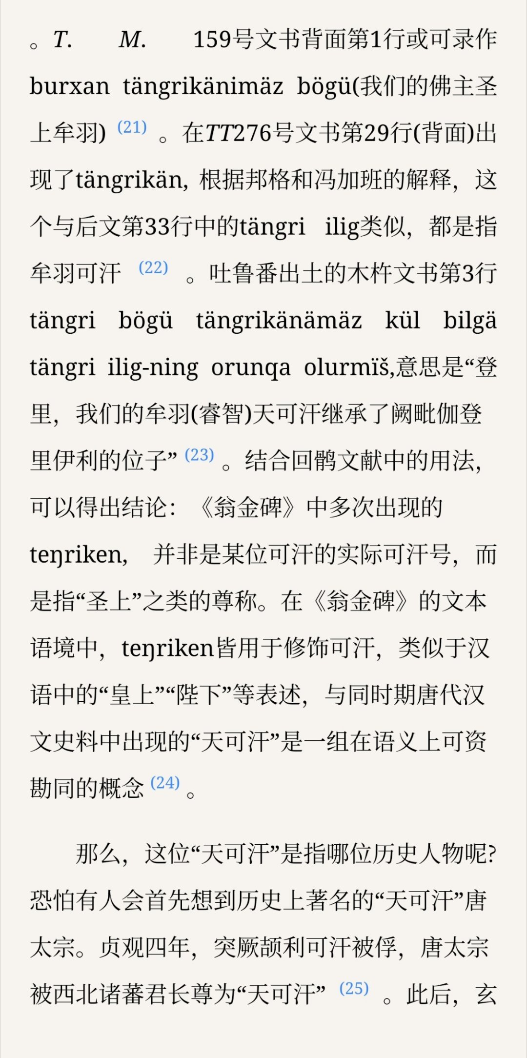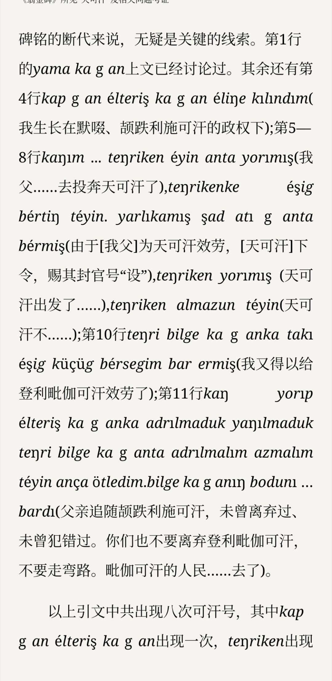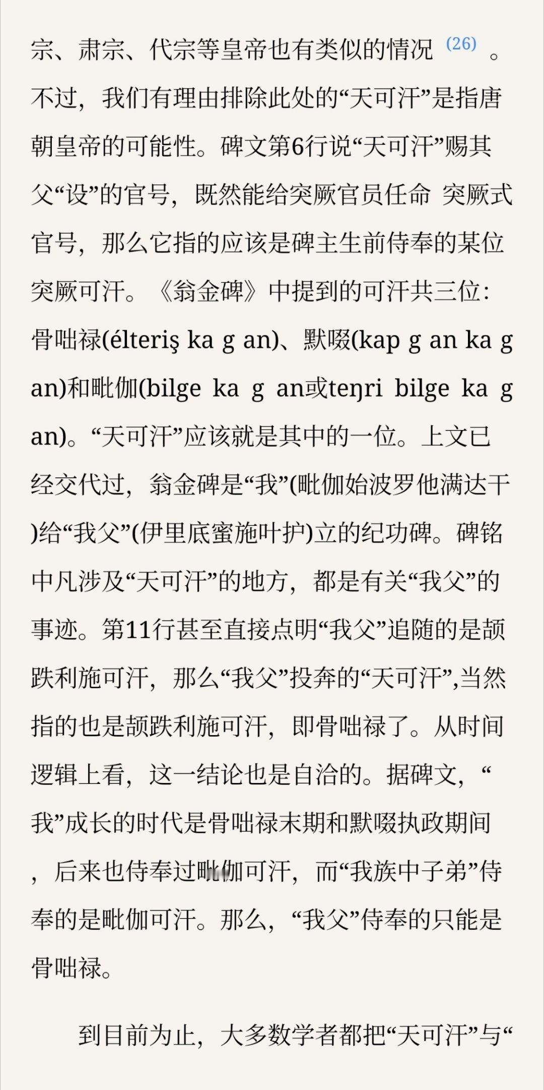 论证“天可汗”与“登利可汗”不是一个东西打破“二元帝国”论比较有新意,但是时间线和因果关系仍然没顺过来,举的teŋriken案例全是唐朝之后的情况,很难说它作为北亚君主(圣人)通称和唐朝的崛起孰先孰后,从所举证据而言不能排除这个称呼的流行是唐朝羁縻的结果。