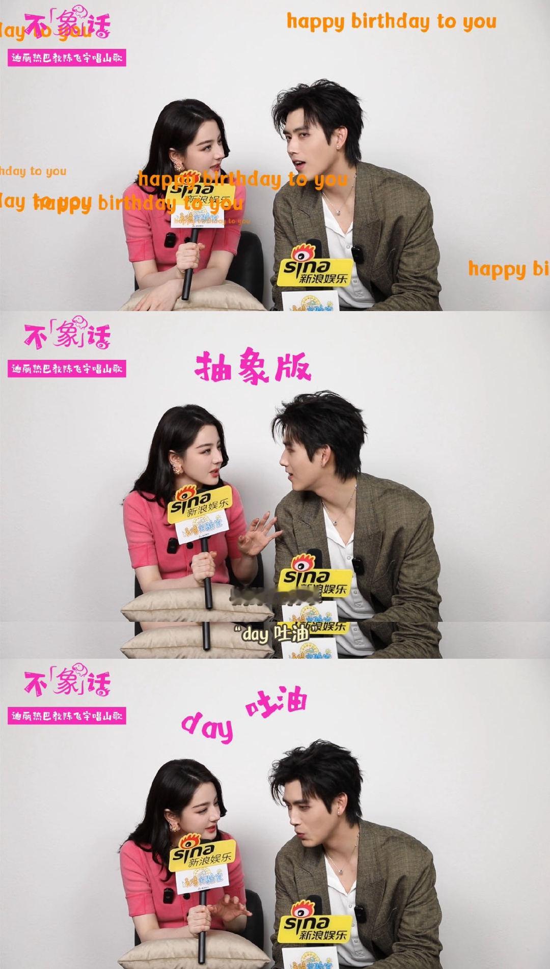 迪丽热巴教陈飞宇唱山歌迪丽热巴在陈飞宇面前都变e了新浪娱乐《娱情实验室》抽象系列