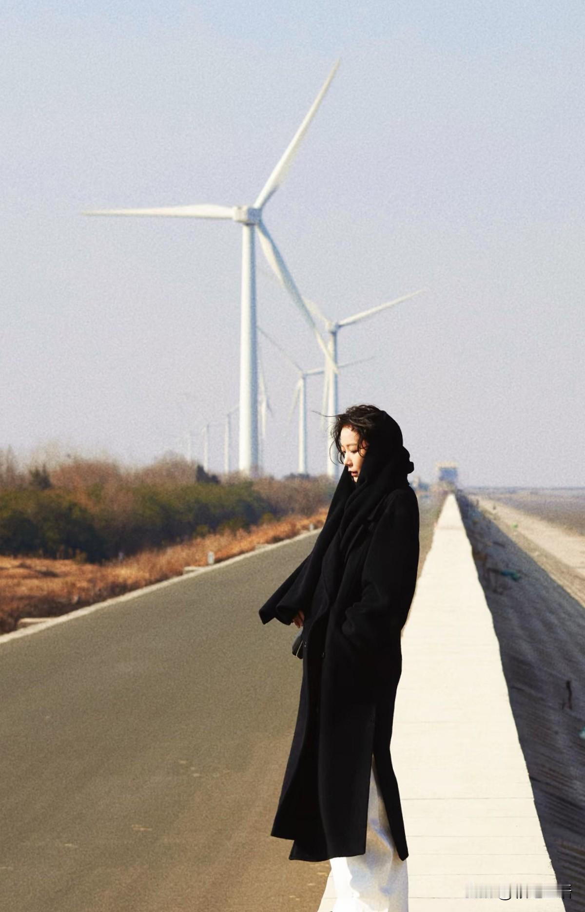 2026年1月27日,著名演员王珞丹打卡宁波的海塘风车公路,她说,宁波的风,吹得