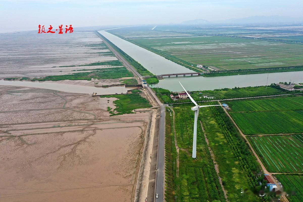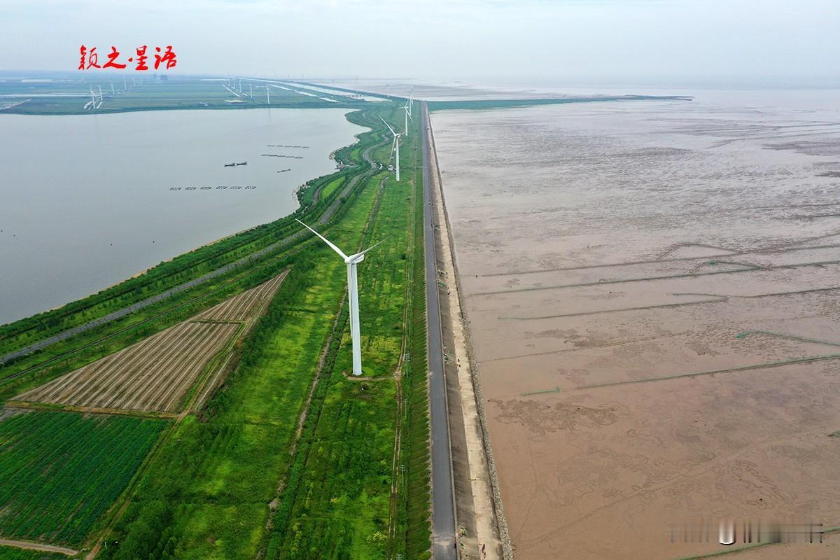 海塘风车公路,一边是茫茫东海和滩涂,一边是田园阡陌纵横,休闲观光好去处。
