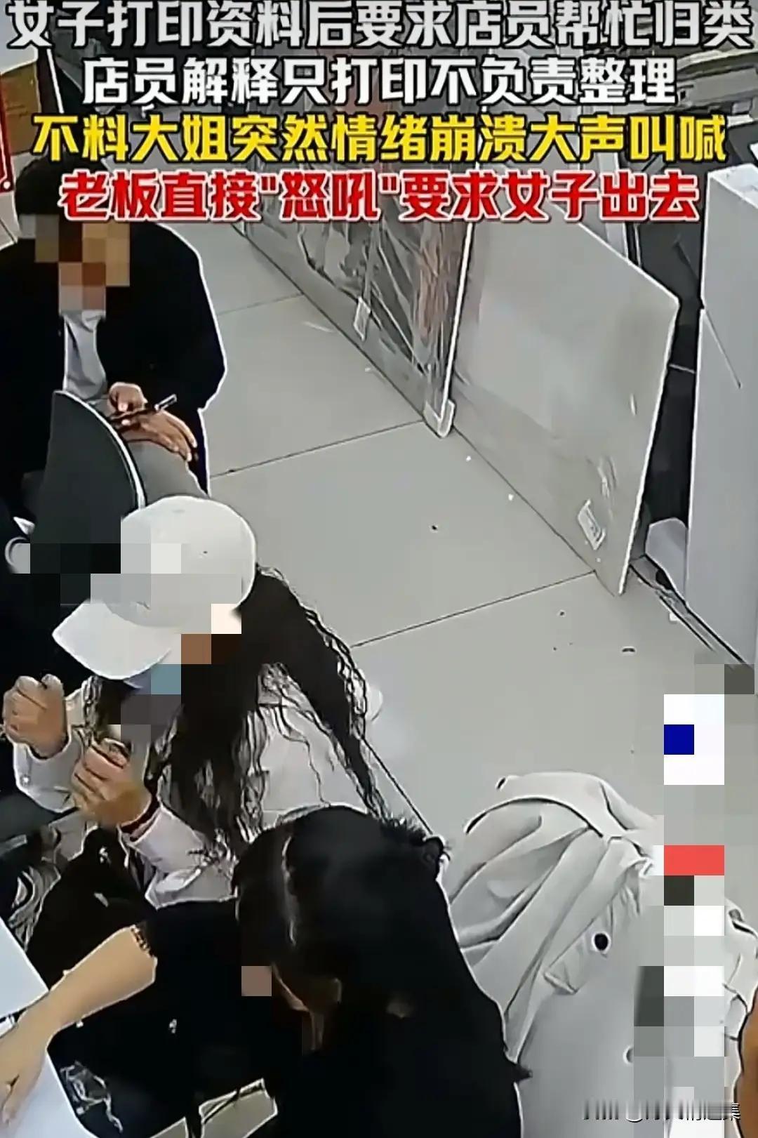 这一幕值得反复拆解。他要求的不是打印,是阅读、整理、归类、排序,再加装订——本质上是在要求一个陌生人替他完成本该自己动脑完成的工序。而他的愤怒逻辑是:你没有主动做,所以你欠我的。这种思维在服务业里正变得越来越普遍,普遍到已经不能称之为个案。