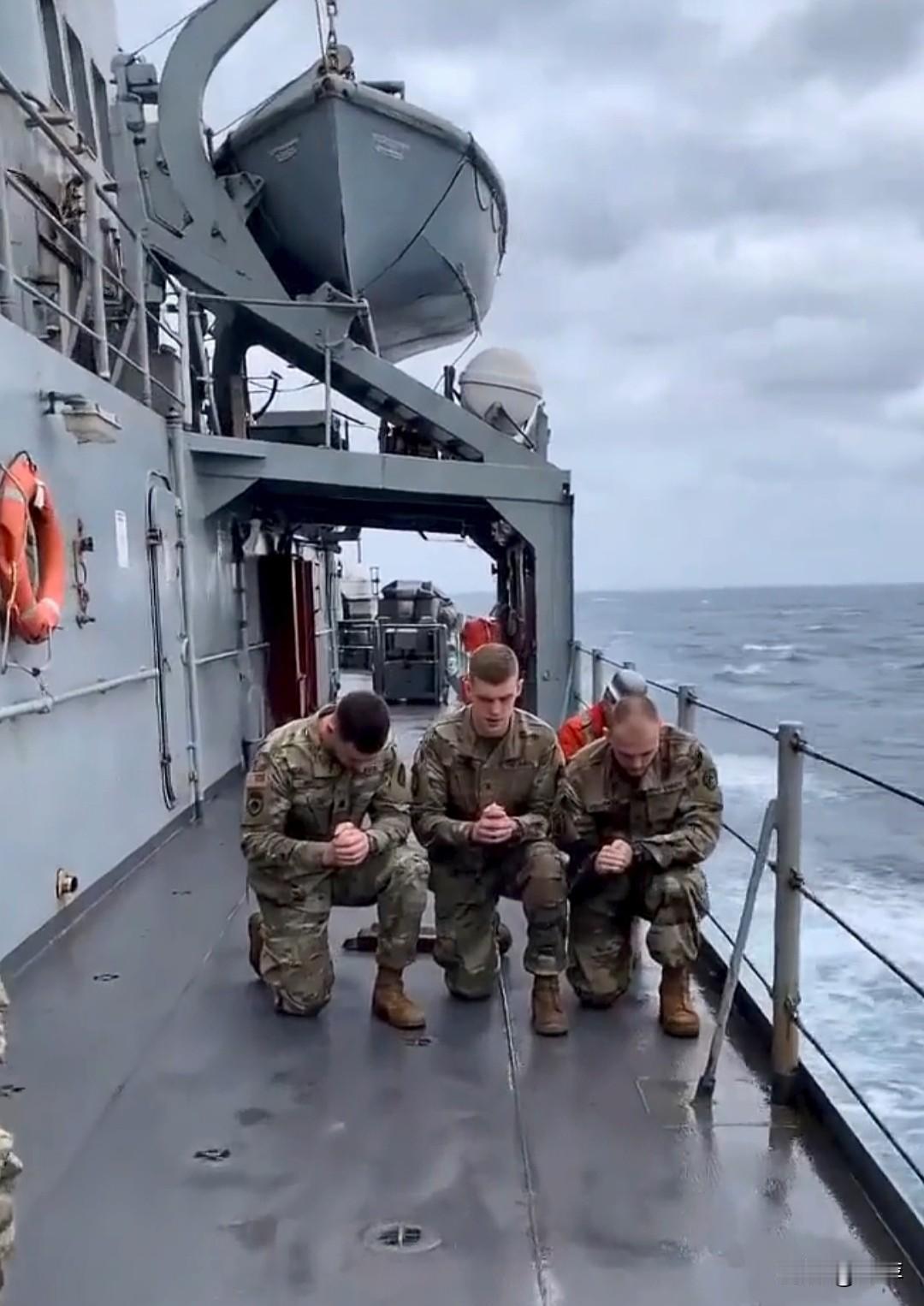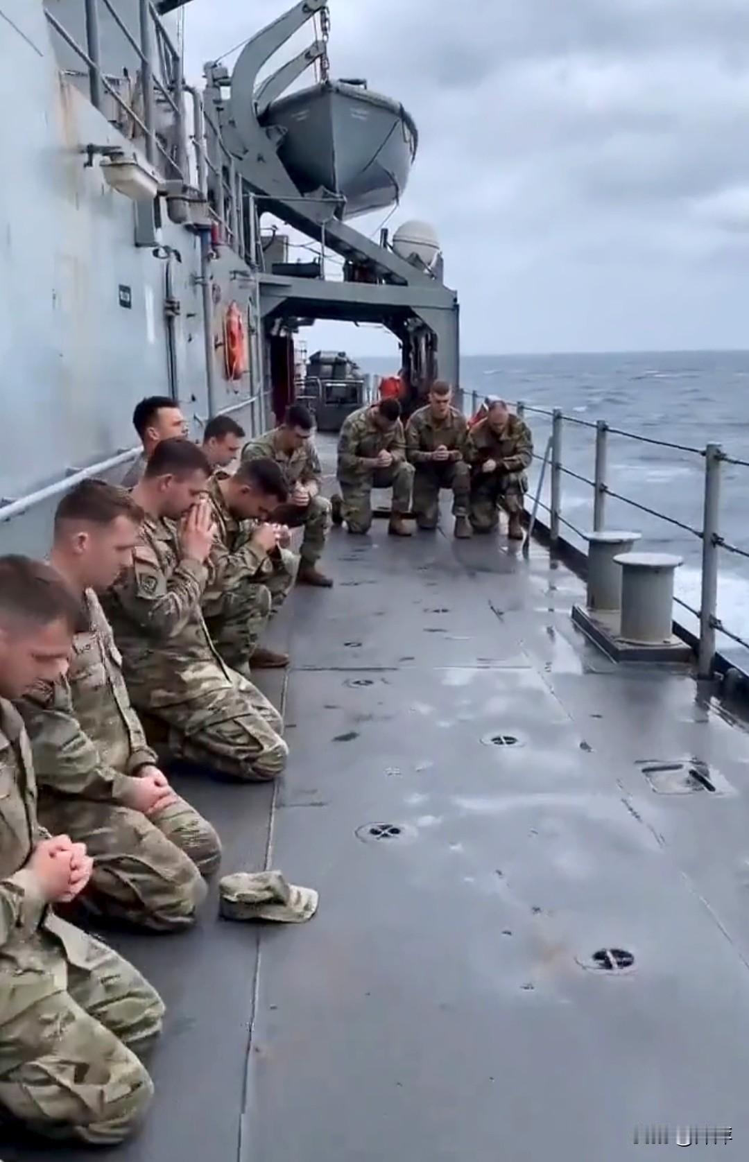 美军舰上的宗教活动多由随军牧师组织,在舰内礼拜堂或指定区域进行,官方不会组织这种公开的集体跪地仪式。这段视频原始场景与目的不明,大概率是士兵自发行为,或是被二次加工、赋予了特定含义的画面,并非标准的美军舰上宗教仪式。