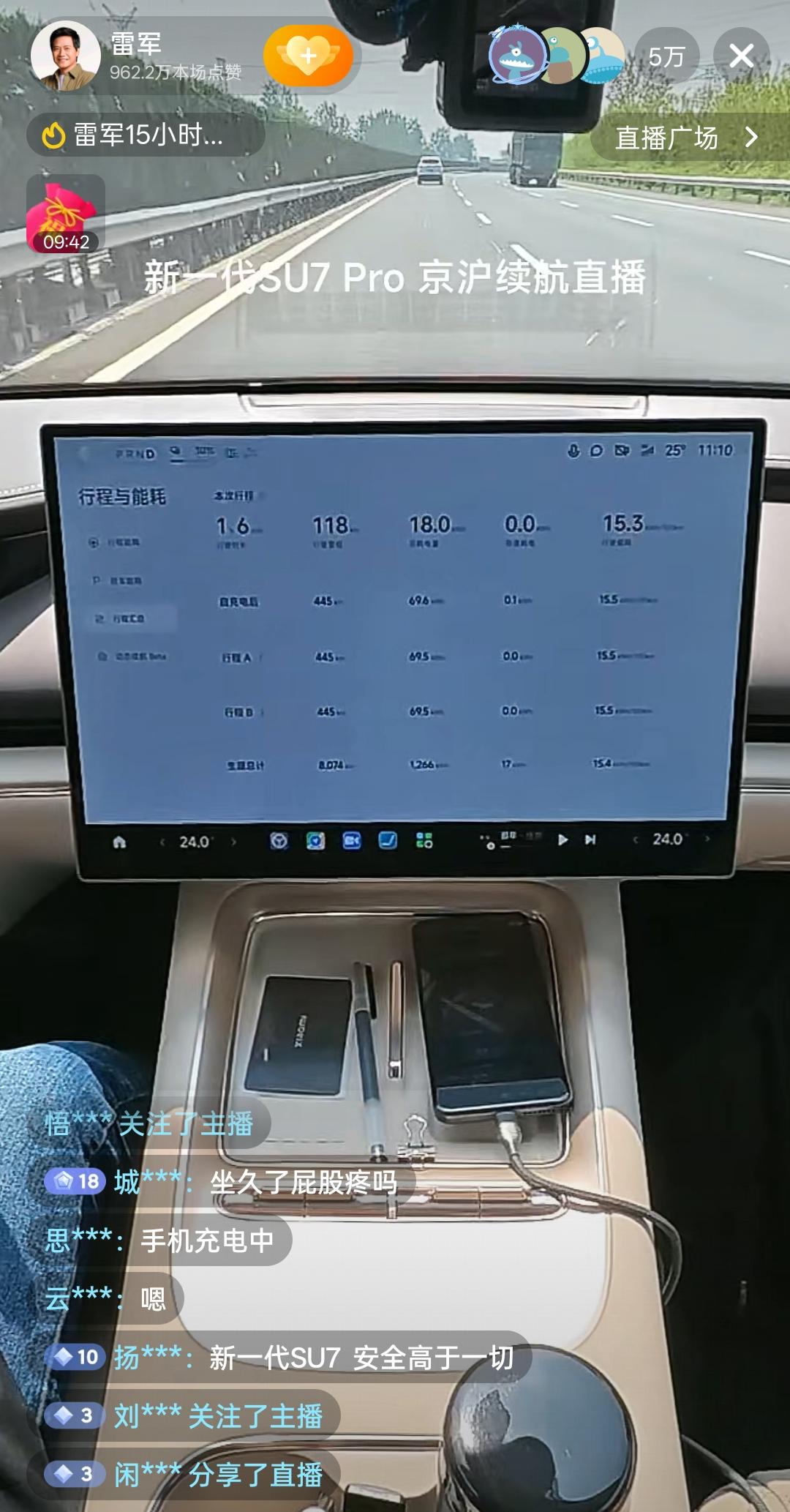 看了一下雷总的小米SU7京沪高速长途续航测试,速度基本都是顶着限速120公里跑的,前三小时的能耗在15.6kWh/100km,10点-11点这段时间气温回升能耗到了15.3kWh/100km,开着空调➕这时速,这能耗还是挺厉害的。