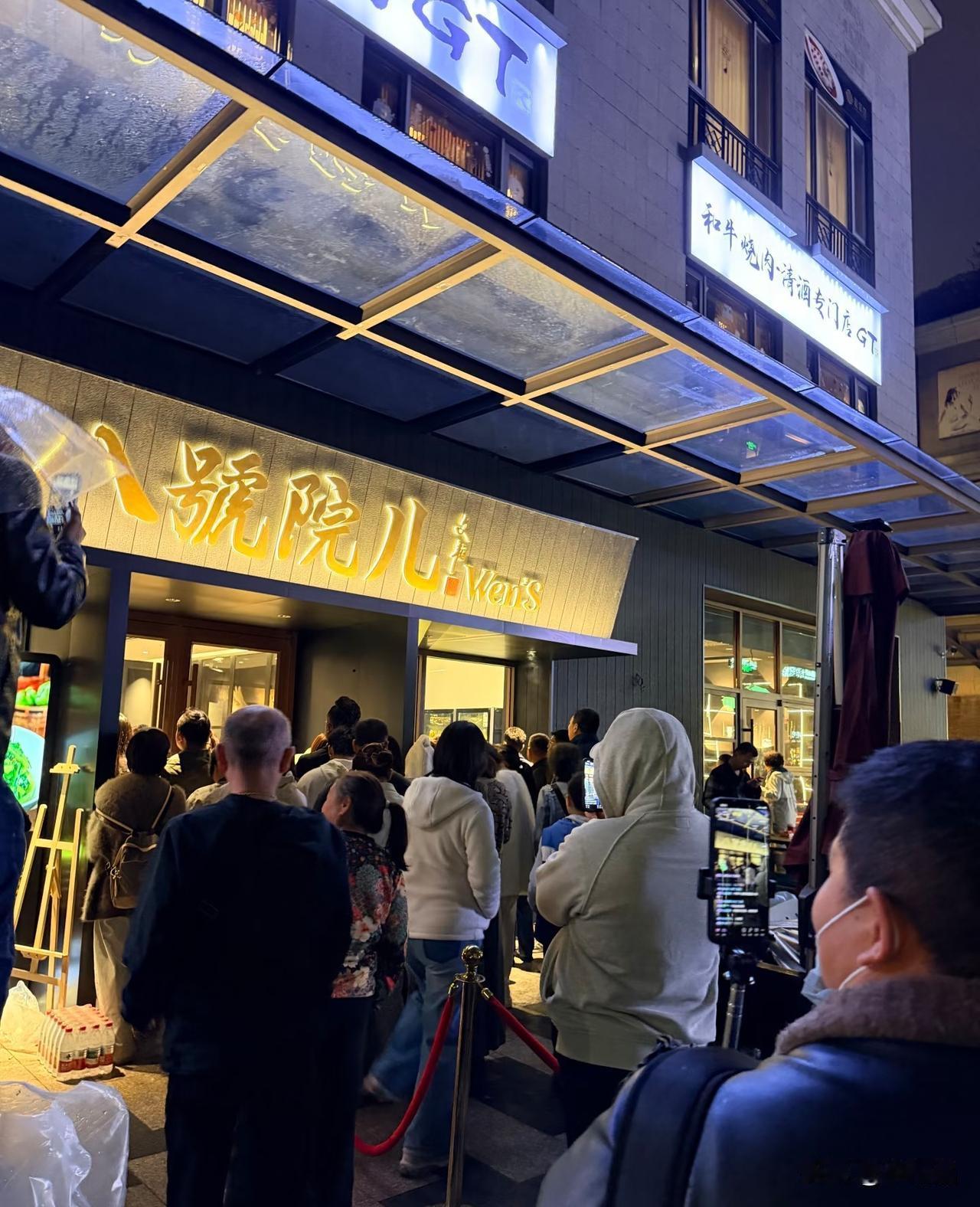 面馆门口直播的、看热闹的,