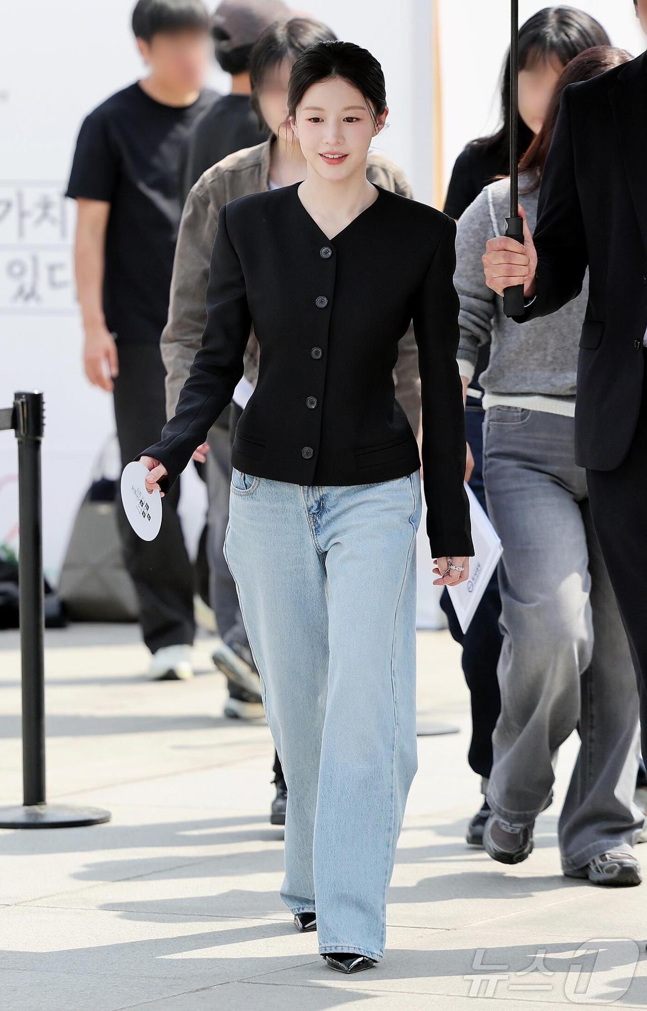 黑色西装太绝了,V领设计拉长颈线、优化头肩比,收腰剪裁精准勾勒腰线,视觉上秒变三七分身材,对小个子超友好。下搭浅蓝阔腿牛仔裤,松弛感拉满,整套穿搭极简高级,既显高显瘦,又把清冷贵气感拿捏得死死的,日常通勤穿也超合适!