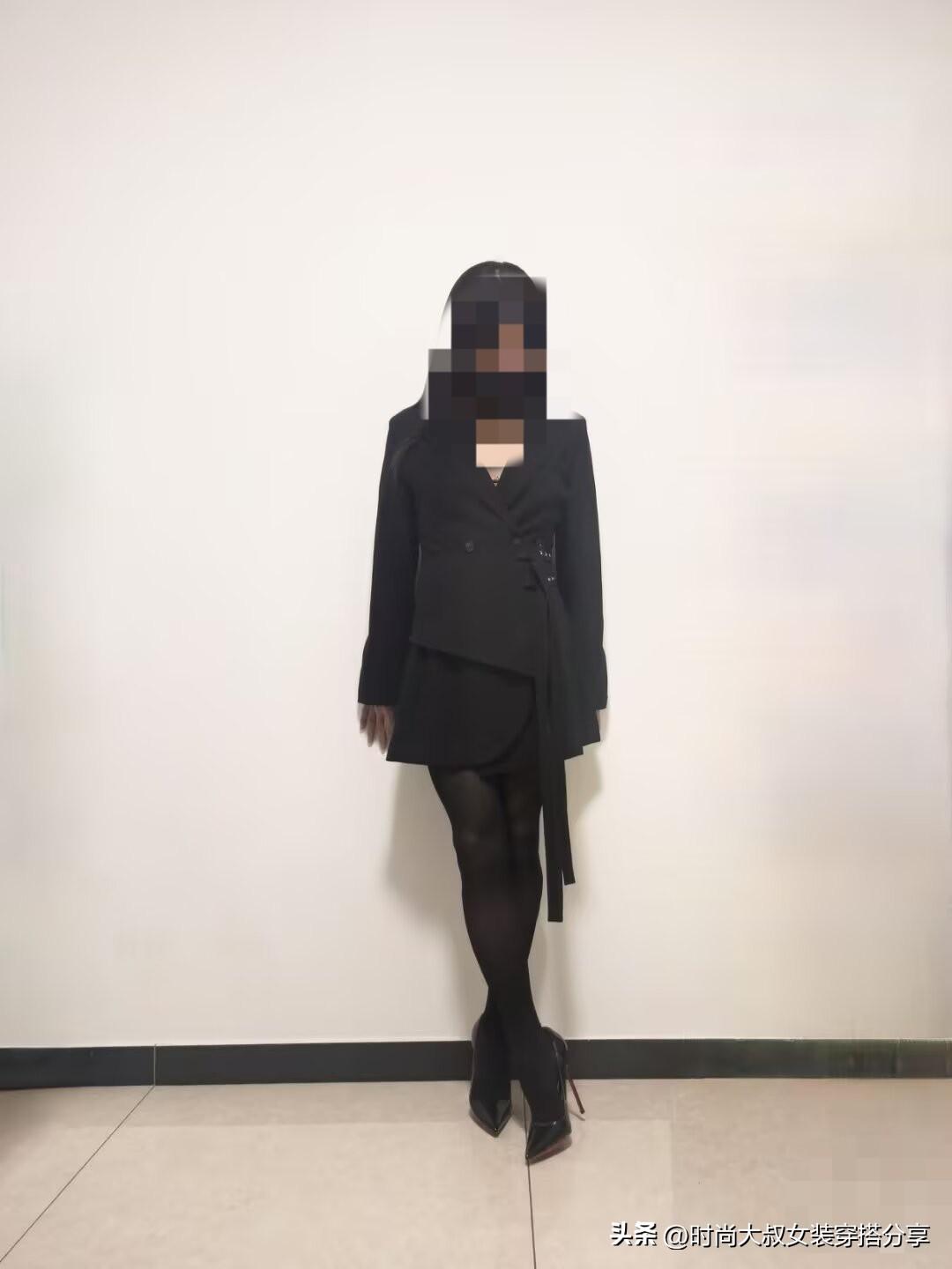 黑色细高跟鞋,搭配黑色长筒袜,黑色外套和披肩长发,这样的穿搭是不是时尚又性感呢?