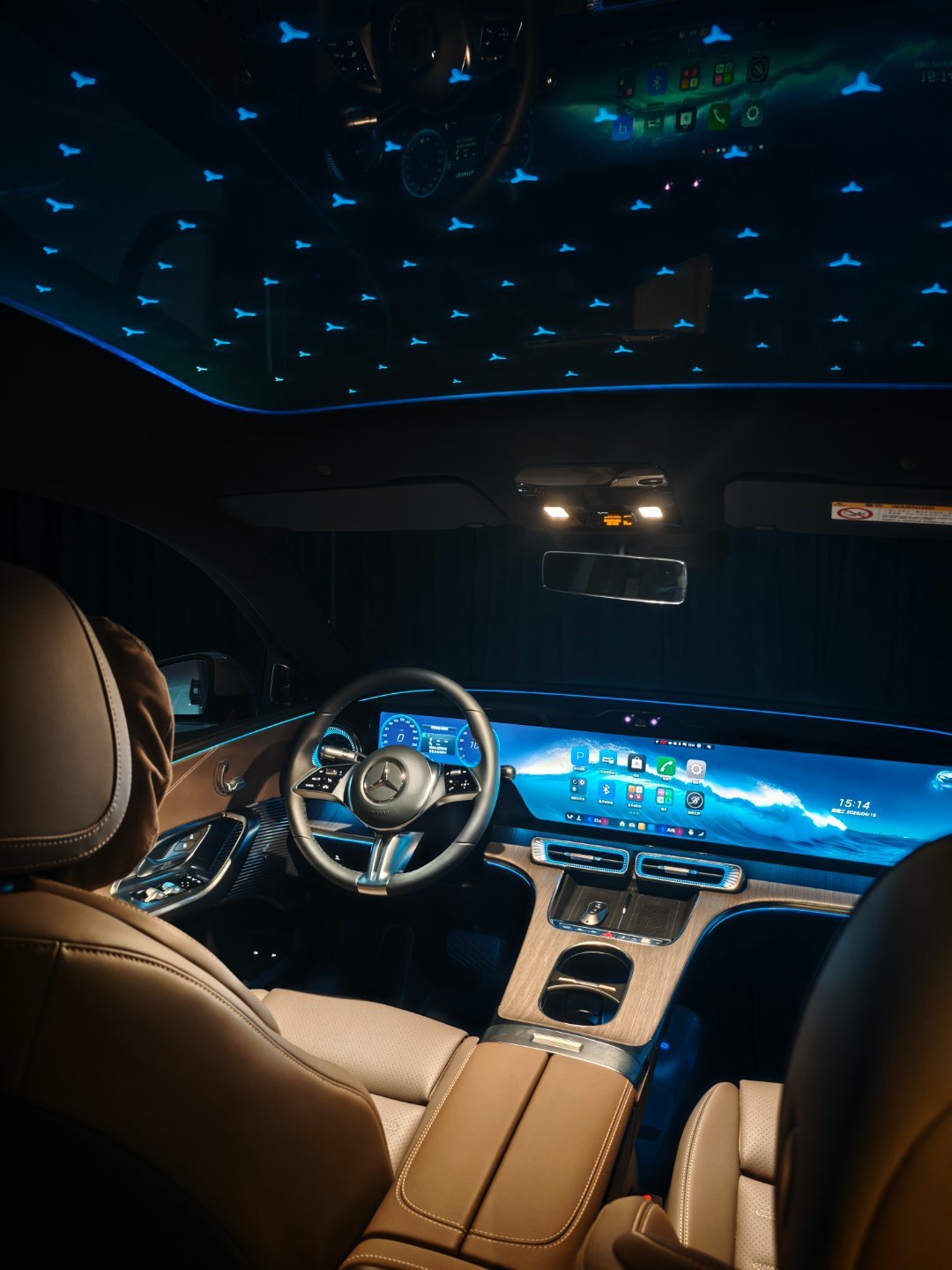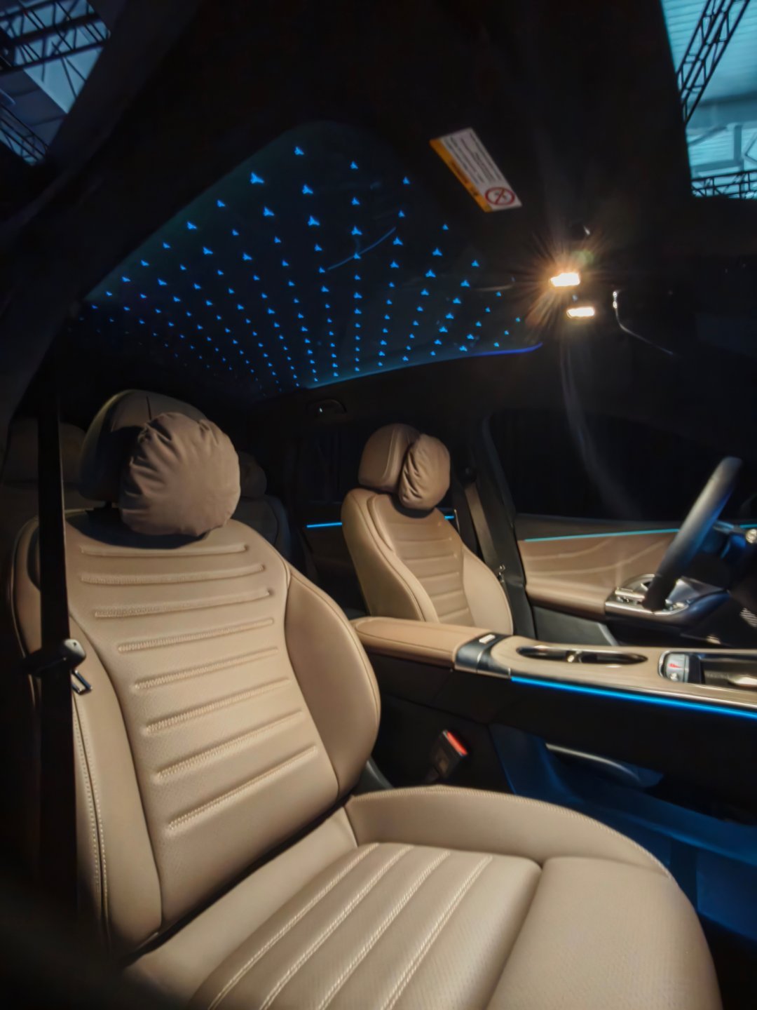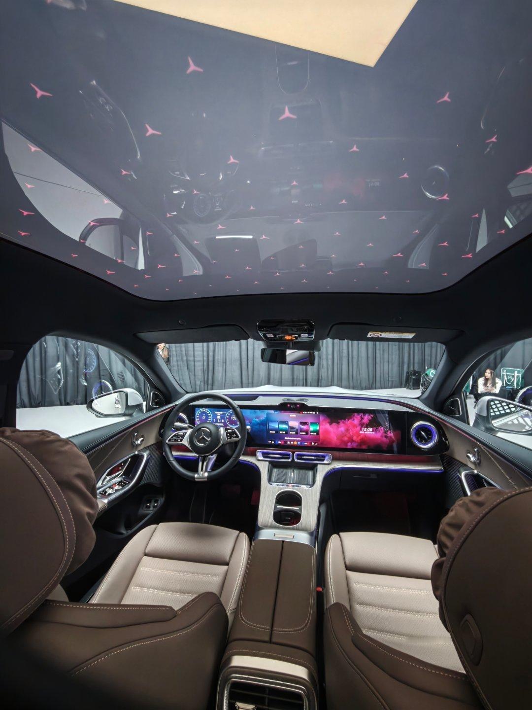 简单的跟大家分享下新的GLC L 纯电版~国产加长后,长度比卡宴还长……轴距3027mm,并且把C&D柱改了,让它更贴近传统suv的造型,所以这台glc视觉上,分量感很强,大墨镜尾灯也比图片上的更好看,整体是能接受的,内饰是氛围营造高手,天窗上有三叉星辉,客户随着氛围灯一起调整颜色,看星星何必去闪灯,坐在GLC L里,你随时随地都处于山顶~