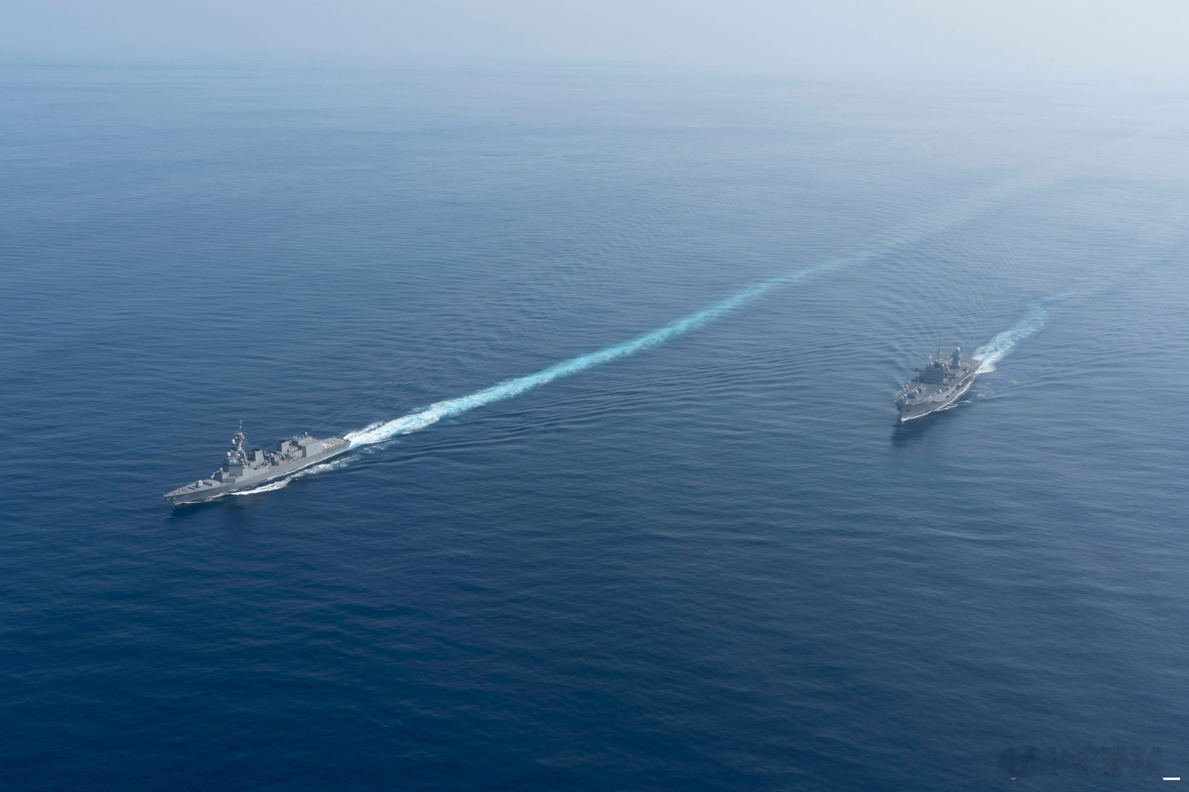 美军第七舰队官方账号昨天吹嘘说蓝岭号指挥舰与日本海自朝日号驱逐舰“以强大的编队穿