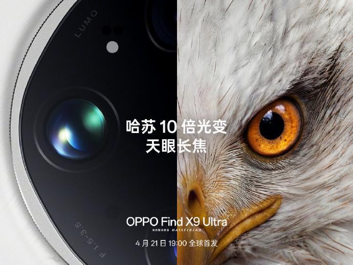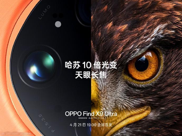 OPPO Find X9 Ultra 哈苏10倍光变天眼长焦,4月21日 19:00 全球首发。