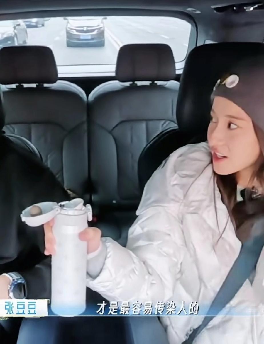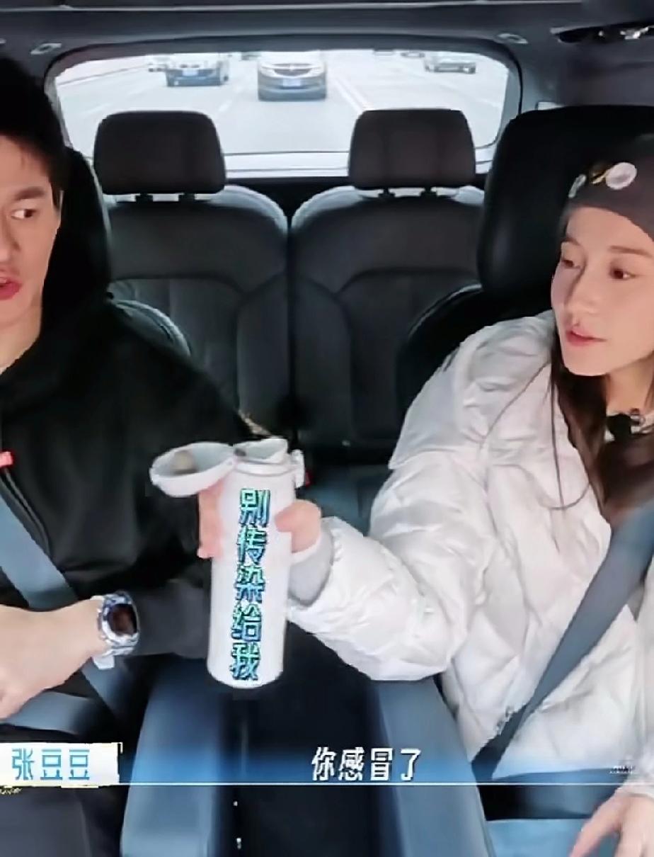 孙杨和张豆豆一起坐车的时候,孙杨说自己嗓子有点哑,张豆豆就拿保温杯给他,让他多喝点水润润嗓子,孙杨喝了一口,问张豆豆要不要喝,张豆豆拿过去刚想喝,想起孙杨刚刚喝过,就不喝了把保温杯还给孙杨。