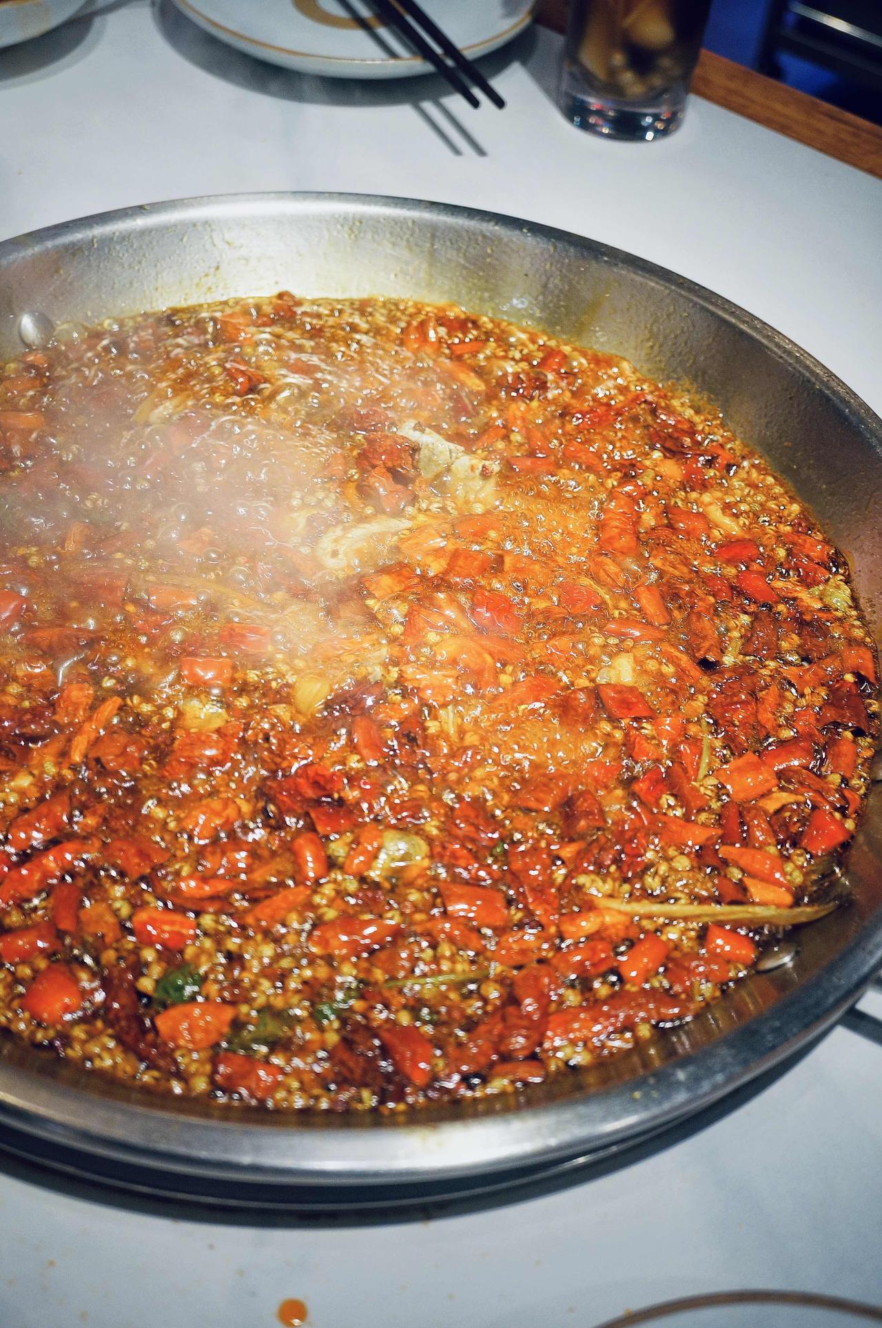 再配上店里的秘制蘸料,加一勺红油汤,蘸上一口,辣到“嘶哈嘶哈”都停不下来。还有那个呛油环节,店员当着你的面把热油淋在辣椒段和花椒上,“滋啦滋啦”响着浇进锅底,香味瞬间炸开!