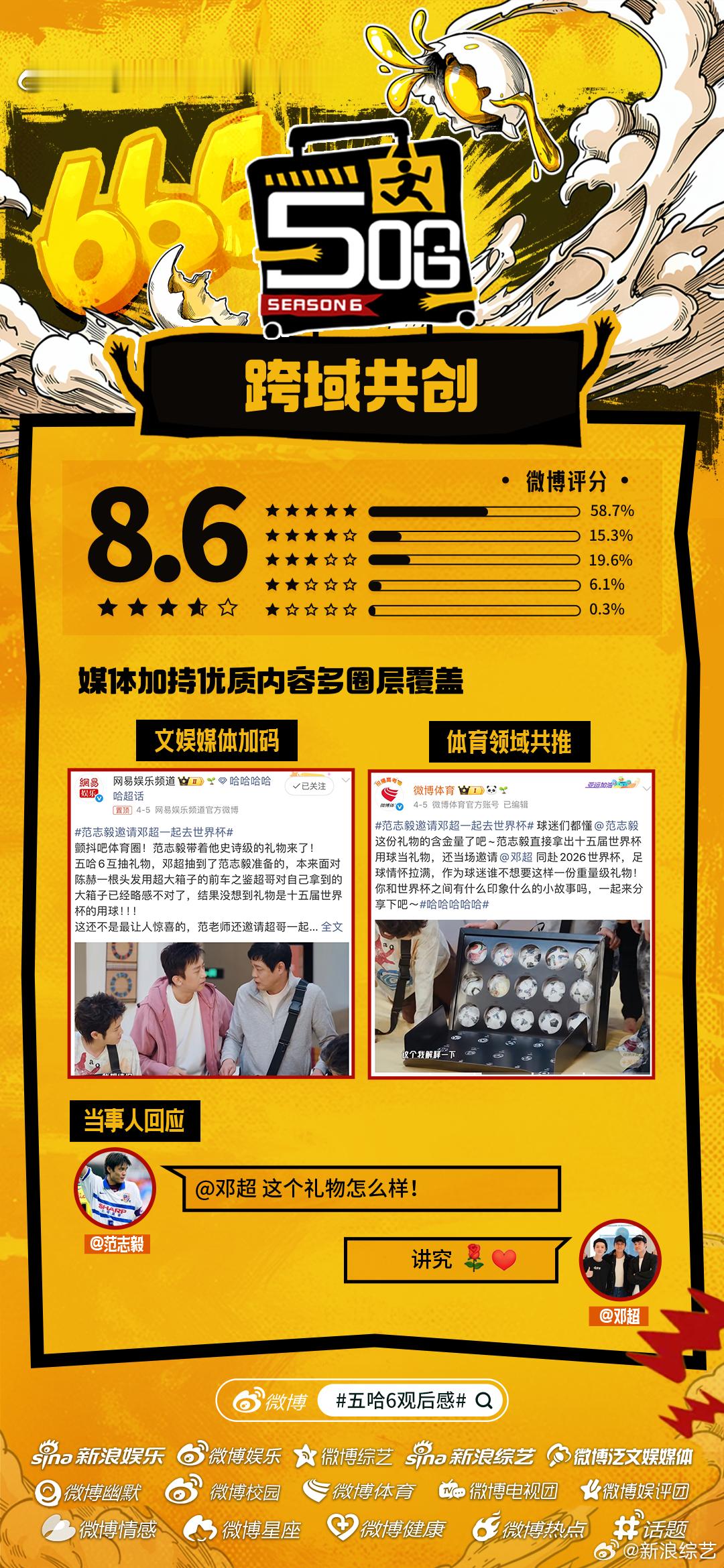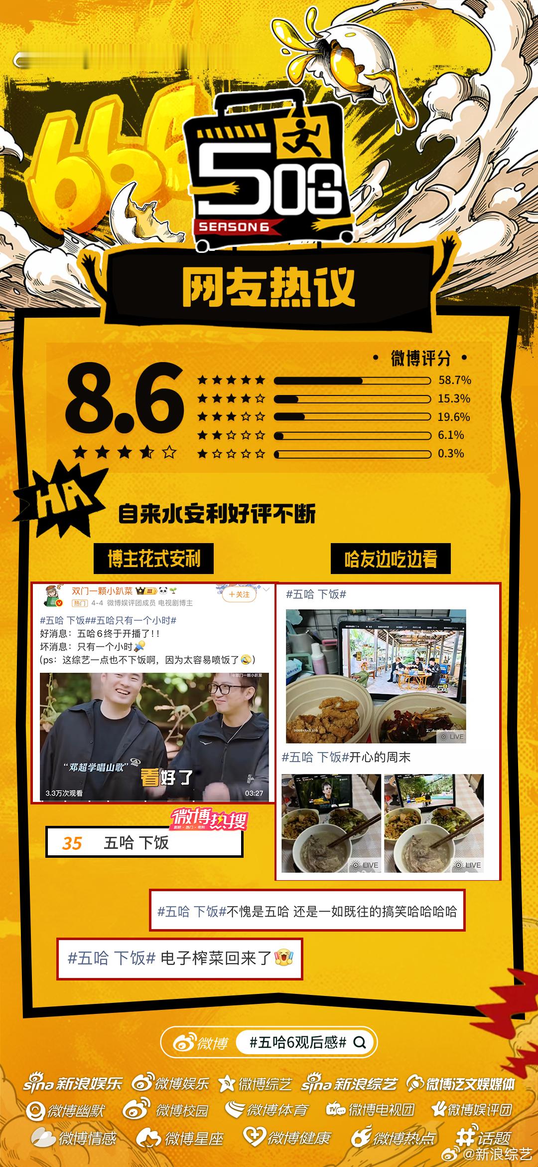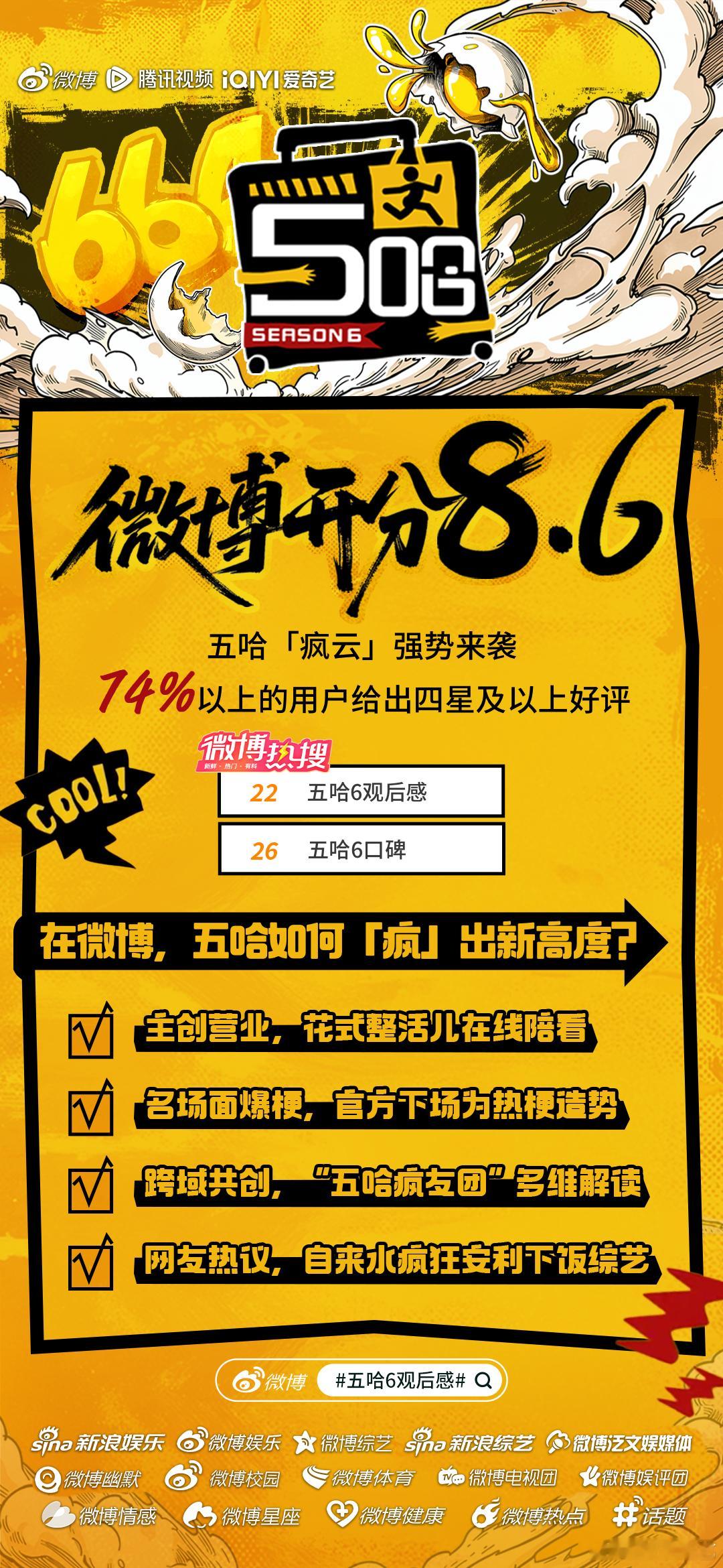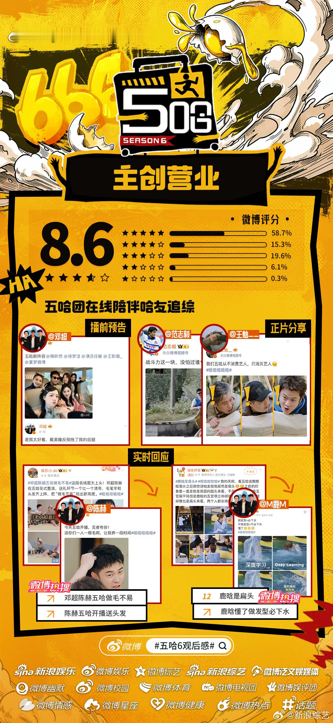 五哈6微博开分8.6《哈哈哈哈哈6》微博开分8.6主创营业花式整活儿陪伴哈友追综,“李乃文进行曲”、“马頔不行不行不行”等名场面频出,更有官方下场助推热梗!媒体加持、疯友团共创、自来水安利……五哈6哪个名场面令你印象深刻?