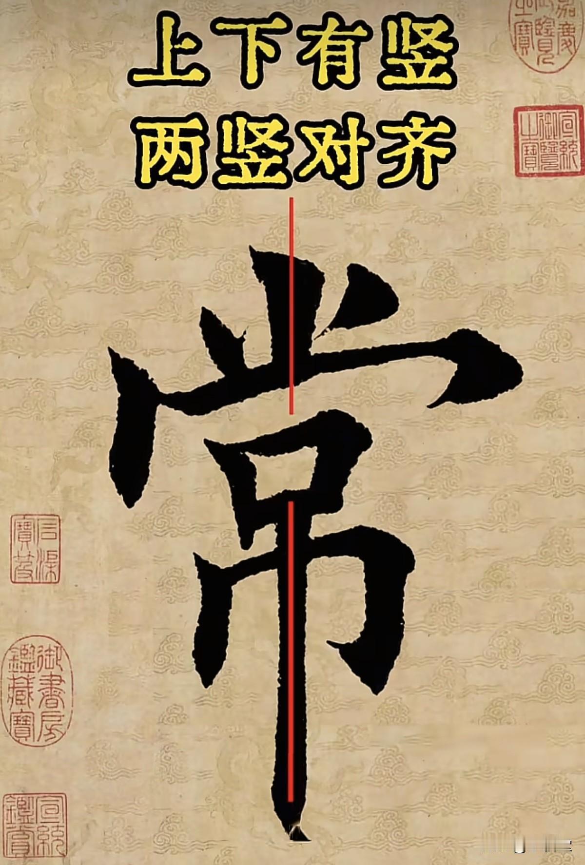 ❷ 上下有竖,两竖对齐:上下结构且有竖画的字,上下竖画要对齐,字才显得规整。