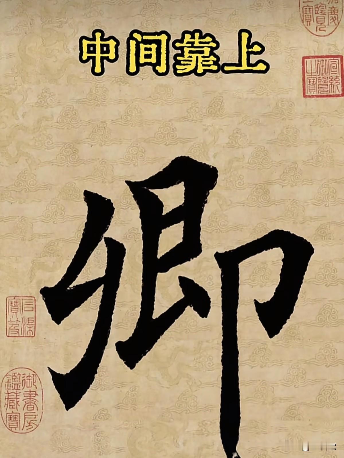 ❸中间靠上:碰到左中右结构的字,中间部分要向上靠拢,让字的重心更稳。