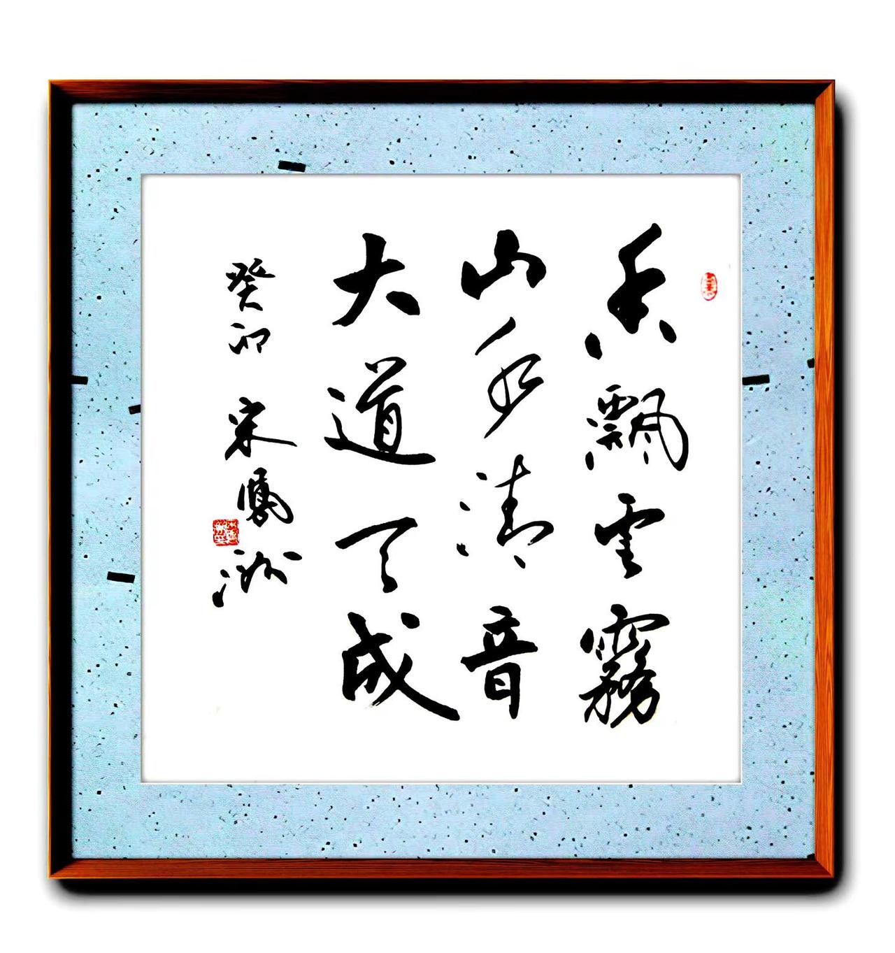 宋凤洲两张四尺斗方书法。书写内容:五岳九州,悠然自得,超然物外。香飘云雾,山水清音,大道天成。书法 宋凤洲 推荐