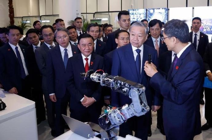 可以说苏林这次来高科技领域访问,也说明了两国在数字领域的合作意向,同时也彰显了中越双方在高科技领域的务实合作新方向。同时也进一步凸显广西作为中国与东盟数字合作枢纽的地位,推动中越从传统互联互通向数字软联通升级,以科技创新夯实双边友好关系,助力中国 — 东盟数字经济协同发展。后来也许会在智慧农业、跨境服务等技术应用。可以说越南在这方面以后会寻求我们的帮助,像正在建设的越南高铁也已经开工,从河内至广宁段于2026年4月12日正式动工,以后苏林再来中国就可以坐高铁过来非常方便。