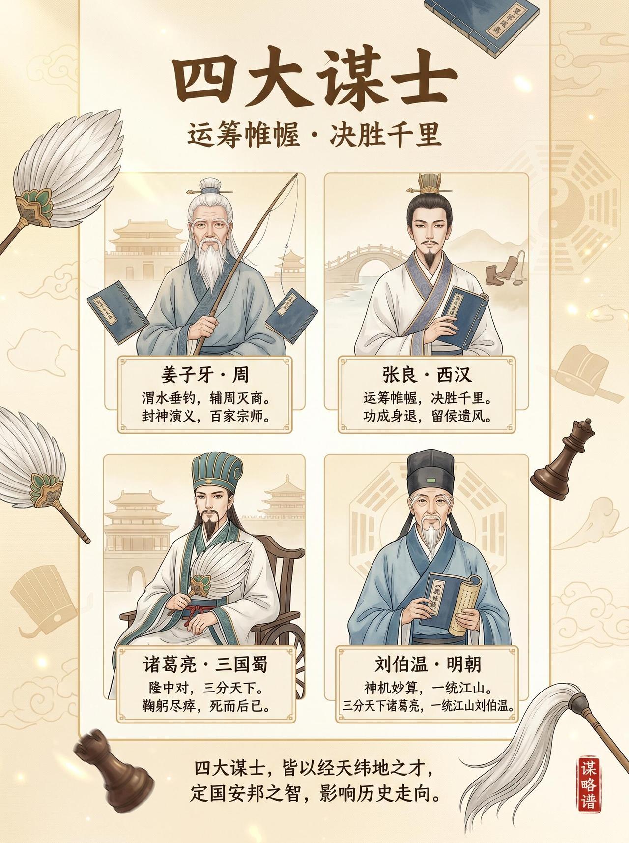 ✅ 四大谋士:运筹帷幄、决胜千里,他们羽扇轻摇,便搅动风云,用智谋书写历史走向。