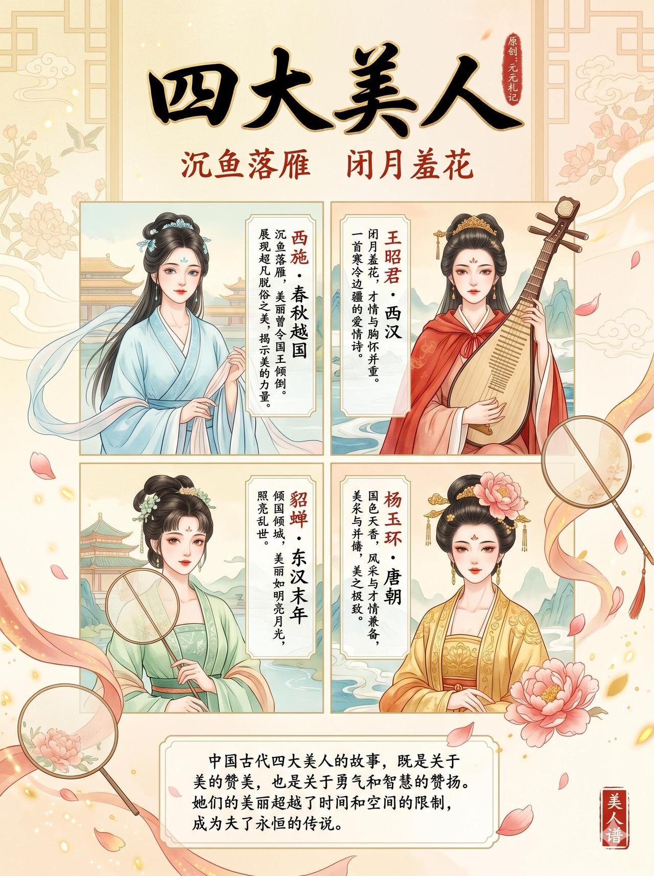 ✅ 四大美人:沉鱼落雁、闭月羞花,她们的美不止于皮囊,更藏着家国大义与传奇一生。