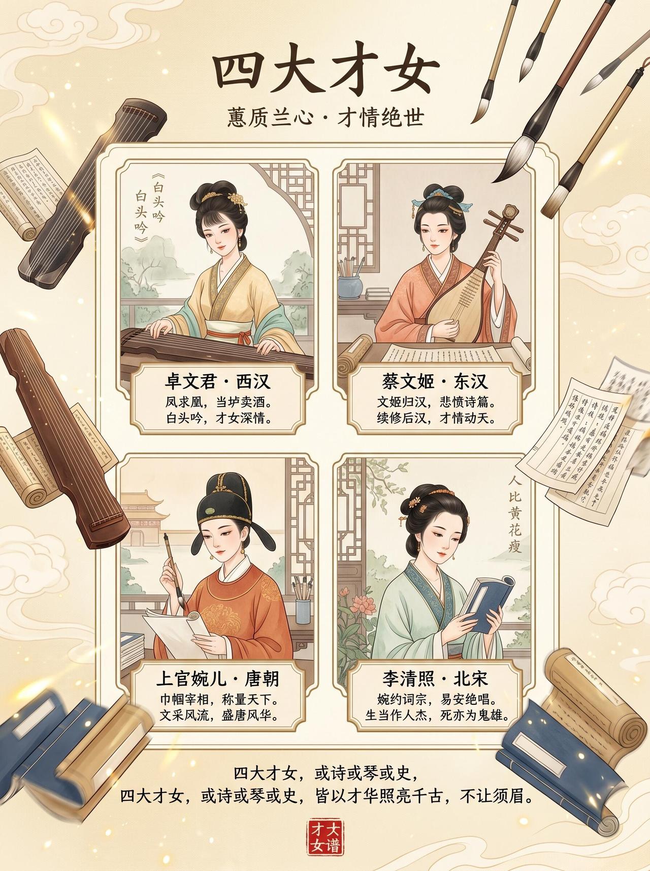✅ 四大才女:蕙质兰心、才情绝世,她们以笔墨为刃,打破偏见,在男权时代写下女子的高光时刻。