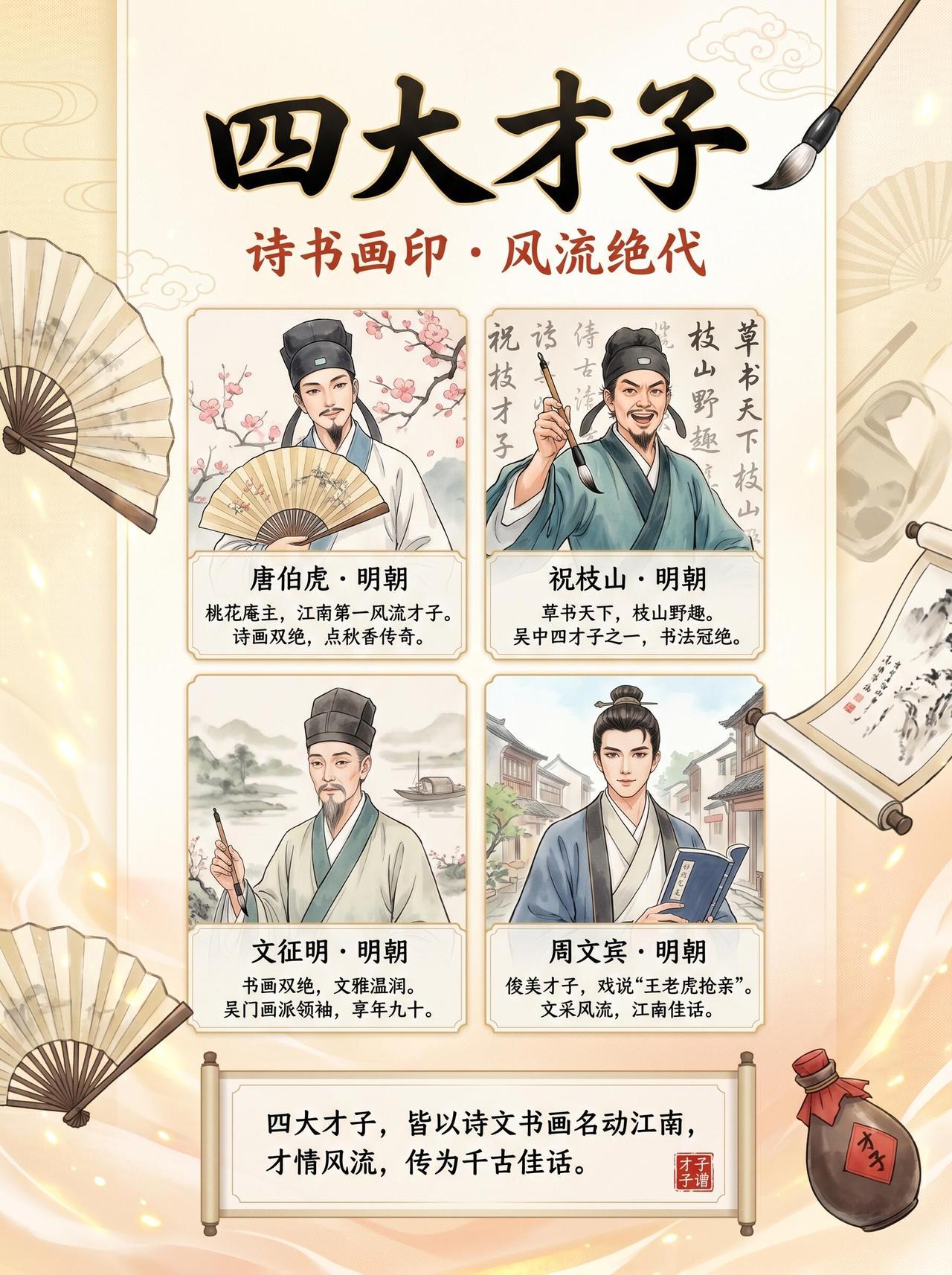 ✅ 四大才子:诗书画印、风流绝代,他们以江南烟雨为墨,写下千古风流,活成了世人向往的模样。