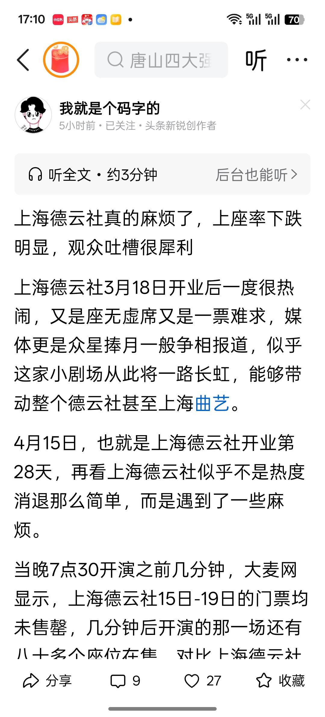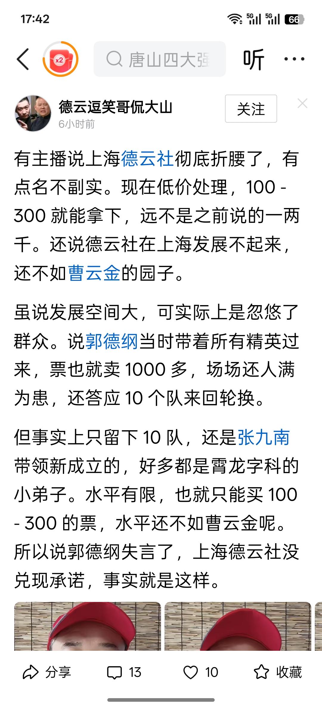 这几天上海德云社分社演出遇冷被许多自媒体人关注,由3月18日轰轰烈烈开幕一票难求到如今门票销售放缓、大量剩票仅仅经历了二十多天,然而出现这种情况是非常正常的,第一角号召力的差异,开业时是当今相声界最具号召力的顶流郭德纲和岳云鹏,现在是籍籍无名之辈,票房能一样吗?第二文化差异,相声是京津地域北方曲种,到上海属于外来物种,而上海喜欢的海派清口周立波从输出内容到个人形象设计是德云社演员不具备的,大蒜就是大蒜,咖啡就是咖啡,郭德纲说的好:高雅不是装的,孙子才是装的,第三剧场差异,上海德云社分社剧场可容纳三百多人,这个规模比较尴尬,比小剧场大,比大剧场小,郭德纲岳云鹏在这样剧场演出肯定一票难求,但是小演员们在这样的剧场演出难以客满,可见如果想尽快摆脱上海分社上座率低的尴尬局面,第一挑选一名大将常驻上海,比如孟鹤堂,张鹤伦,第二加快节目创新、净化工作,必须做到入乡随俗,如若想仅靠德云社的金子招牌就挣到盆满钵满是不可能的,