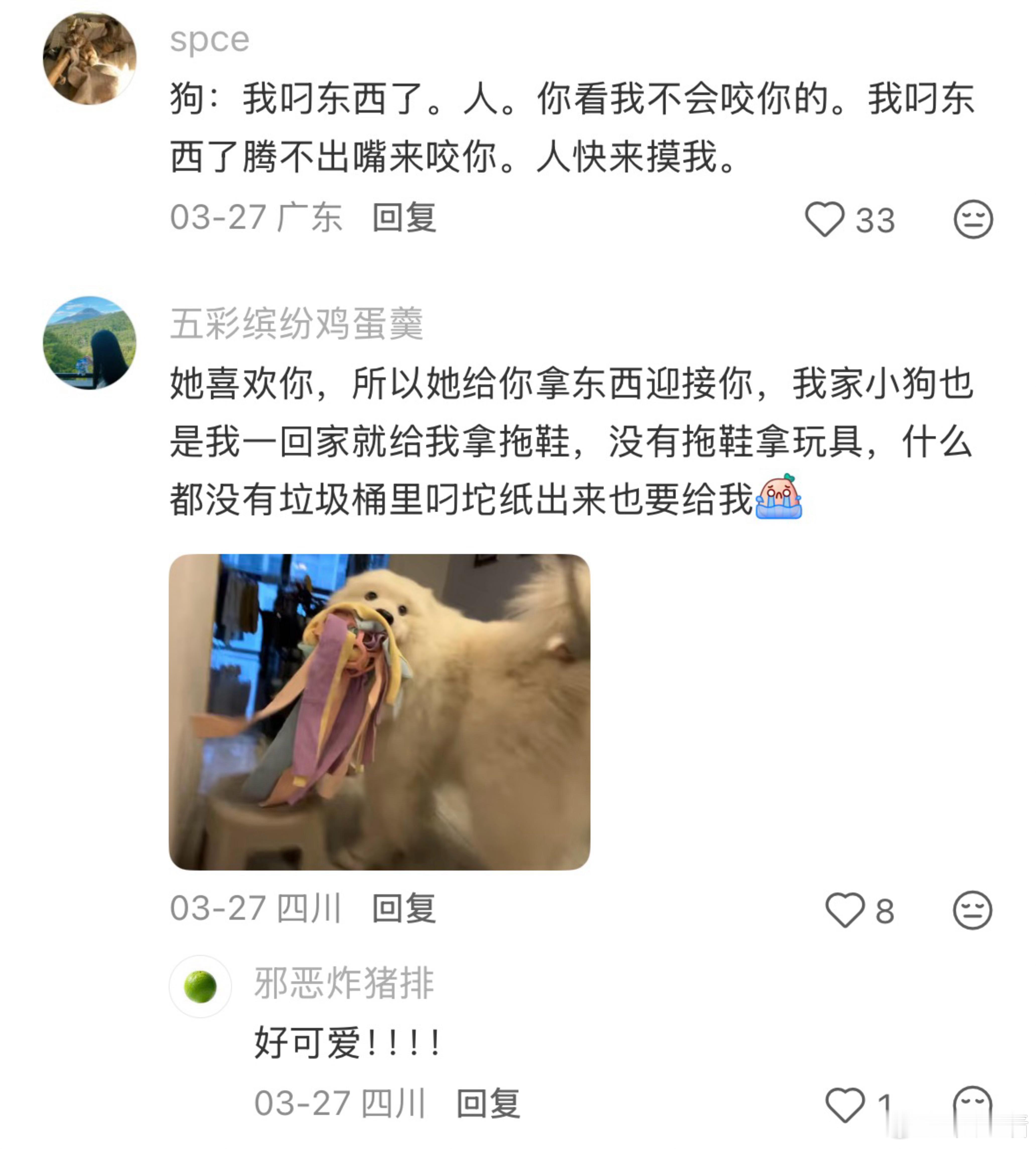 原来小狗嘴里叼着东西就是证明自己不会咬人,可以放心来摸摸!