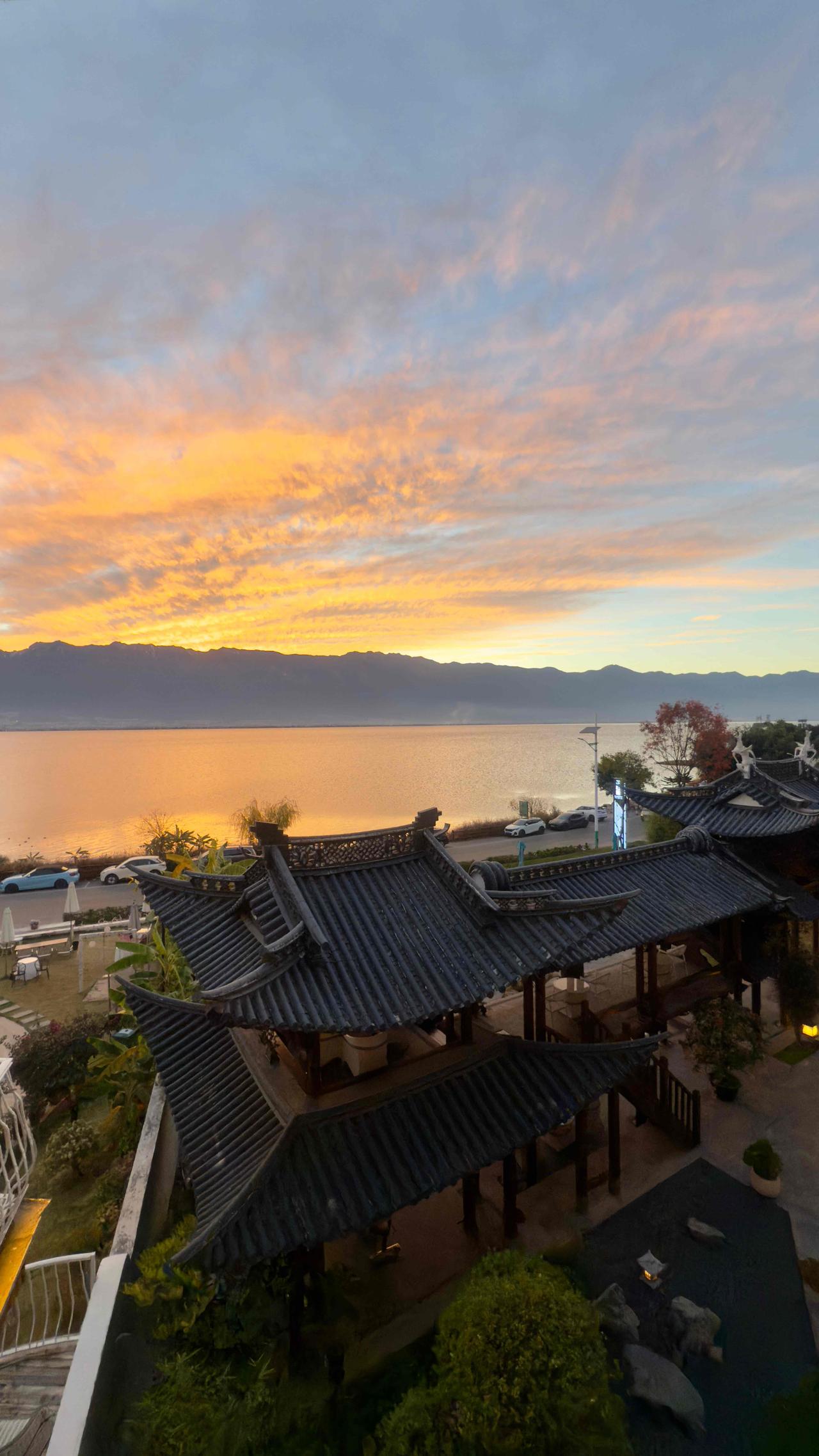 午后我不爱待在房间,总去酒店的天台酒吧,找个角落坐着,看夕阳把洱海染成金红色,偶尔有路过的服务员,会递来一杯温水,轻声说“风大,注意着凉”,妥帖又暖心。