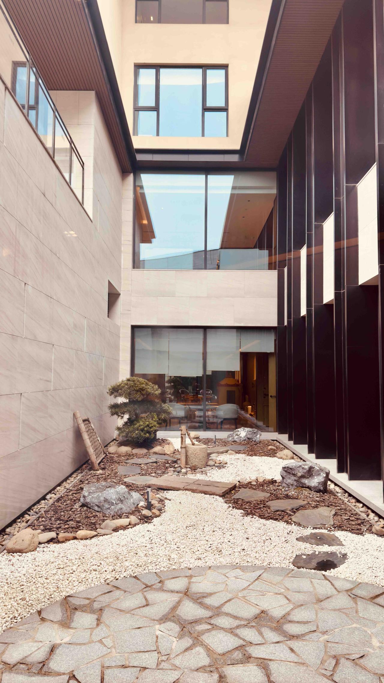 我的房间朝外,能看到酒店外的大街,城市在不远处慢慢醒来;父母的房间朝内,面对的是庭院,假山、树影、水面,一切都在自己的节奏里。