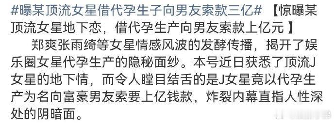 曝女顶流向男友索款三亿狗仔爆料:网传有J姓顶流女星与富豪男友交往期间产生经济纠纷