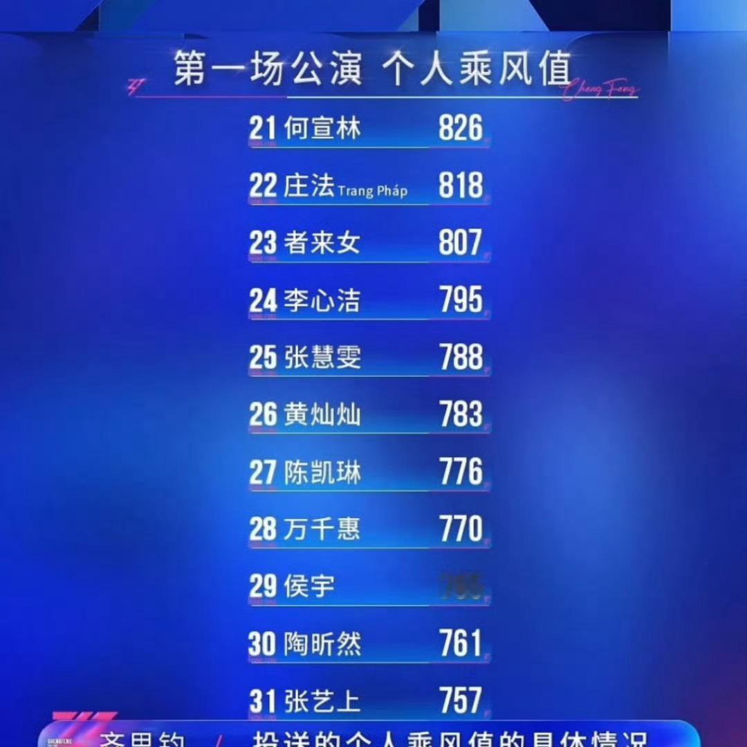 浪姐一公乘风值排名浪姐一公乘风值排名已出,李小冉乘风值第一名,张艺上最后一名,期待姐姐们二公的精彩表现乘风2026