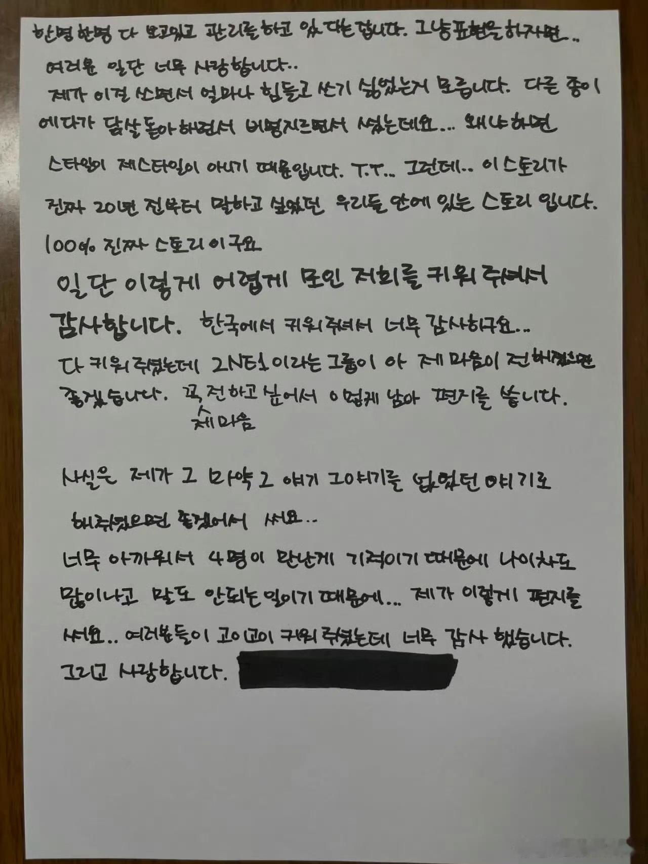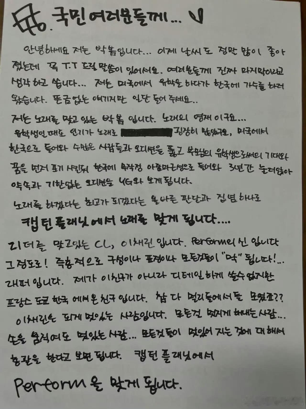 朴春手写信回应争议 今日,2NE12NE1 朴春上传手写信回应此前争议。希望大家