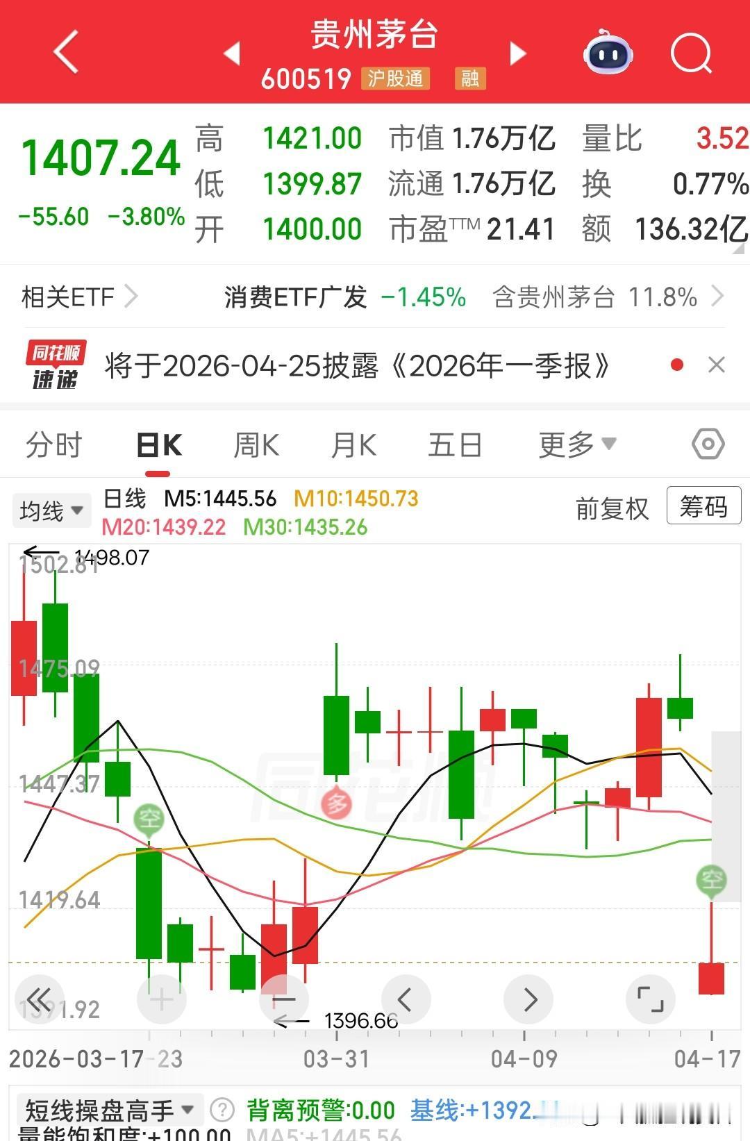 茅台被科技超越了……源杰科技今天1445故意的吧?茅子是1407元茅台股神话 开始破灭了