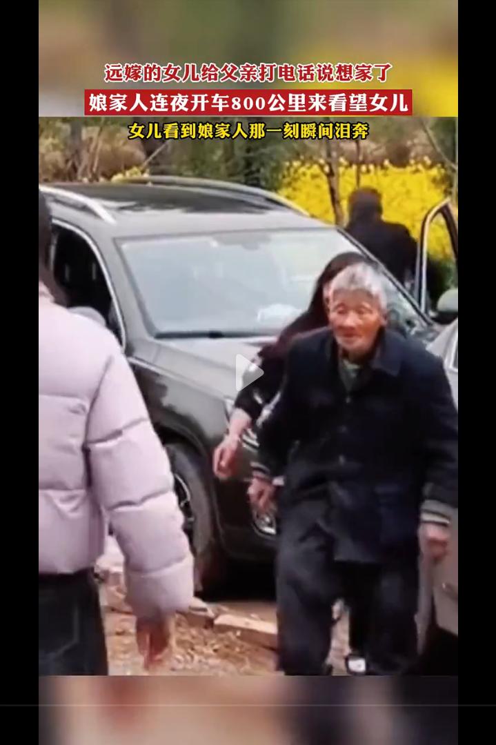 女子远嫁他乡几年没有回娘家,电话里对父亲说了句想家了,父亲连夜赶了800公里带着家人来看女儿,当父亲第二天早晨出现在女儿身边时,女儿瞬间泪奔。