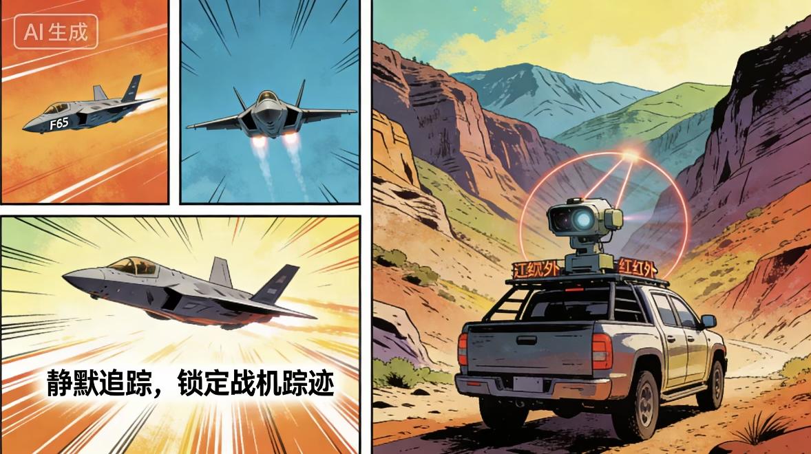 山谷中的作战小组利用皮卡车上的光学、红外设备,在不发射任何雷达信号的情况下,悄悄锁定低空飞行的F-35。