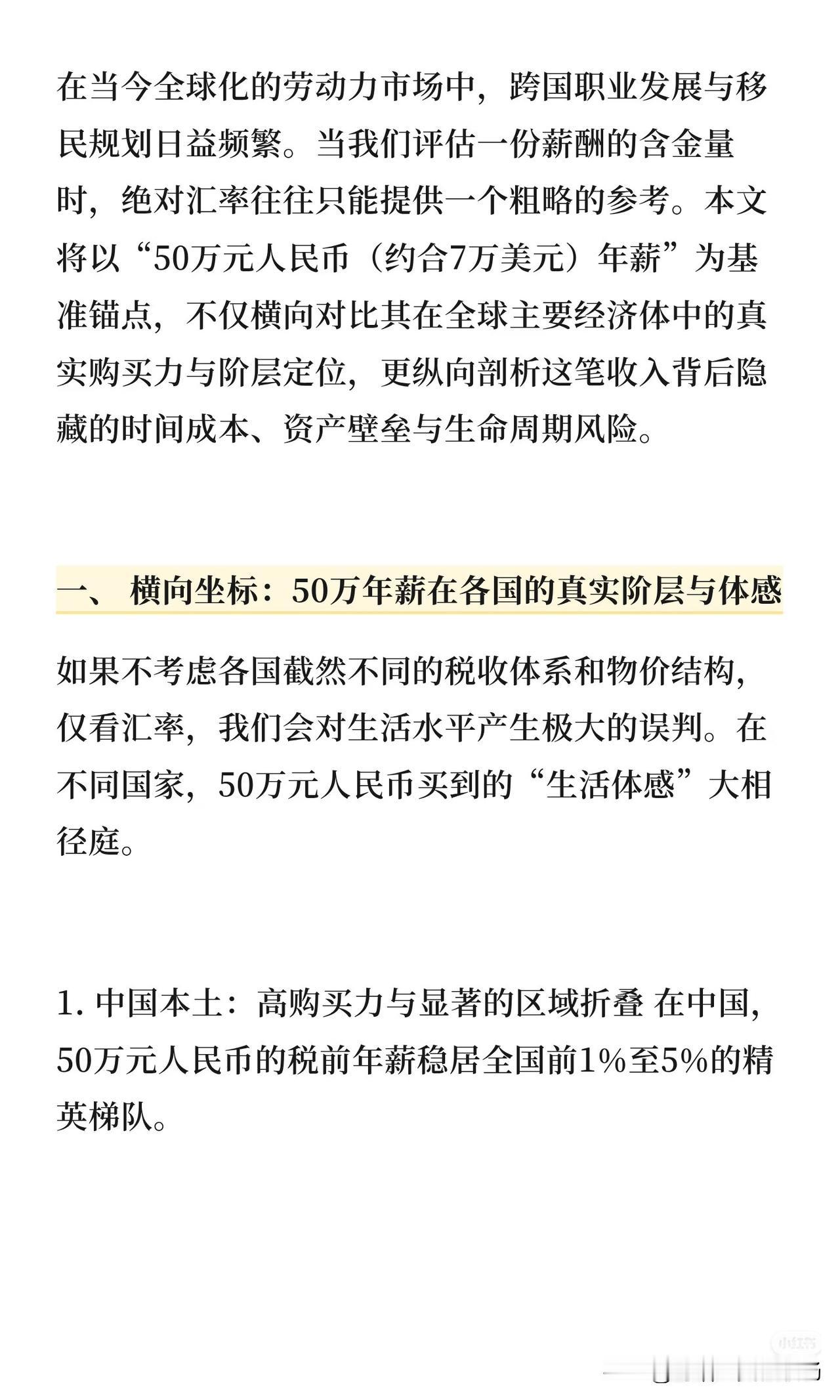 很多人觉得年薪50万已经是人生赢家,但这个数字在全球不同地方,含金量天差地别。