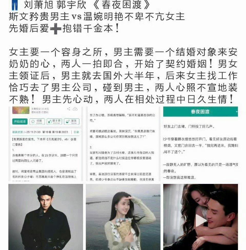 曝郭宇欣刘萧旭二搭郭宇欣刘萧旭春夜困渡 啊啊啊啊啊,接二搭的这下可以把心放到肚子里了啊!!!郭宇欣和刘萧旭终于二搭了,据说还是8集长剧。郭宇欣、刘萧旭合作《春夜困渡》,斯文男主和明艳女主,开始脑补郭宇欣和刘萧旭的对手戏咯!!!