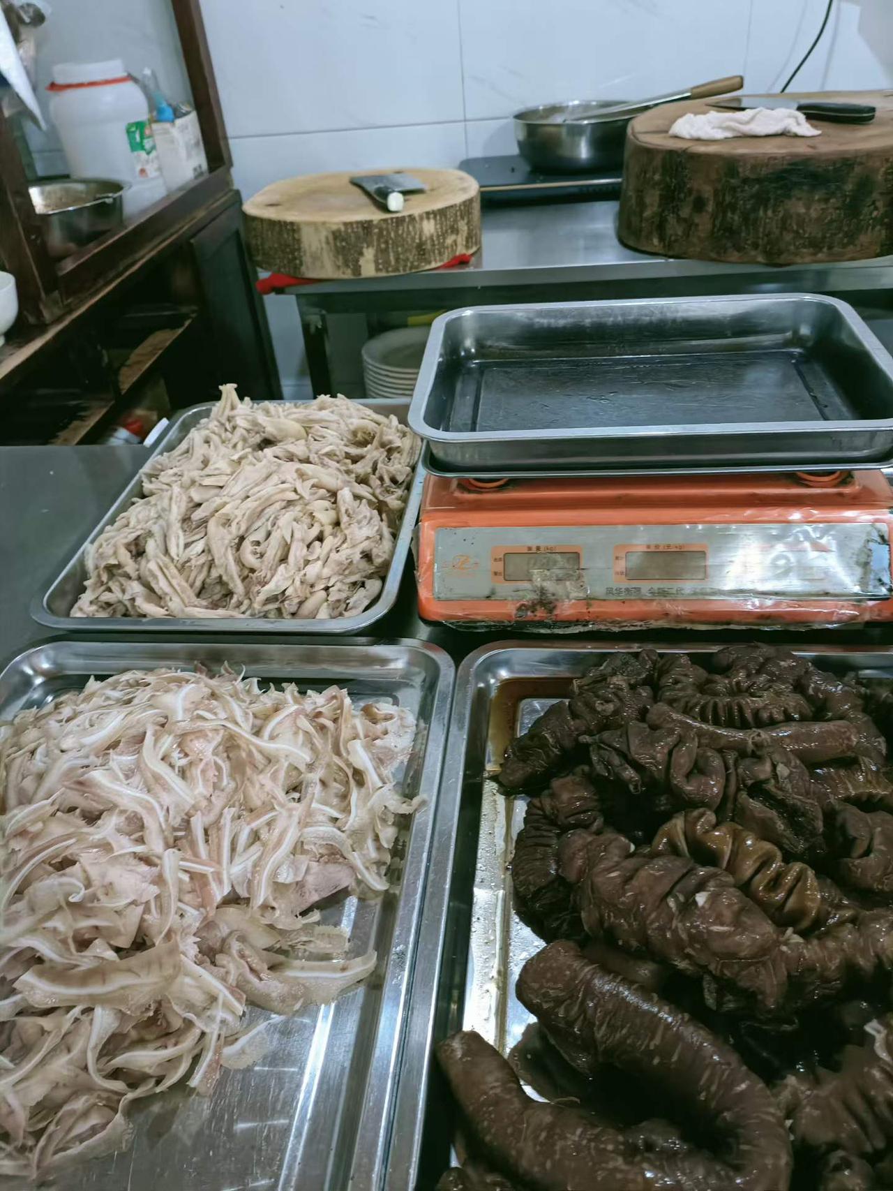 今天(周五)原本安排陪夫人出去转转。谁料上午9点不到,“蜀滋香.鲜鱼火锅”连锁品牌企业董事长谢超先生来电告之,车已到小区门囗,让我一起去都江堰市青城山镇安龙村海棠路316号品鉴“安龙猪耳朵”。正好5月中旬由四川省乡村旅游协会主办的首届“行走的乡村美食”研修班开课,寻找乡村美食恰好对路,于是一路同行来到了安龙这家没有店名的小店。这是一家纯属家族式的餐饮鸡毛店,谁是店主好像都不清晰,上世纪七十年代出生的俩囗子一直在凉菜房忙碌,女儿王茜在店门囗招呼应酬客人,此店最有名气的是烟熏猪耳朵,据说已是三代传承。点了一斤烟熏猪头肉外加“激干胡豆”、卤肠头、心肺炖萝卜、豆花、生菜油拌嫩大蒜、拌凉粉以及素拼。道道菜说不上味好,但食材绝对新鲜、生态,品质上乘。这也正应对了“乡村美食”所面临的痛点和难点。即厨师技艺的提升和品牌的宣传,他们很难走出去交流学习,更缺乏挖掘和恢复祖辈们的“庖丁解牛”般的技艺和坚守,尽管求生存是刚需,但学习交流是必须。尤其是对像王茜姑娘这代年轻的传承人,更是如此。
