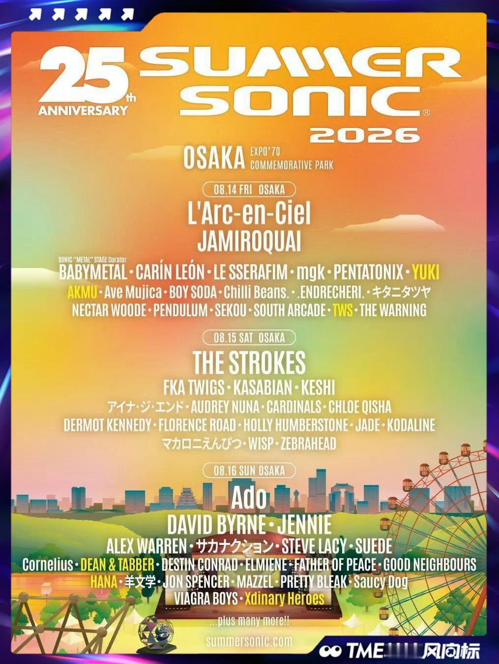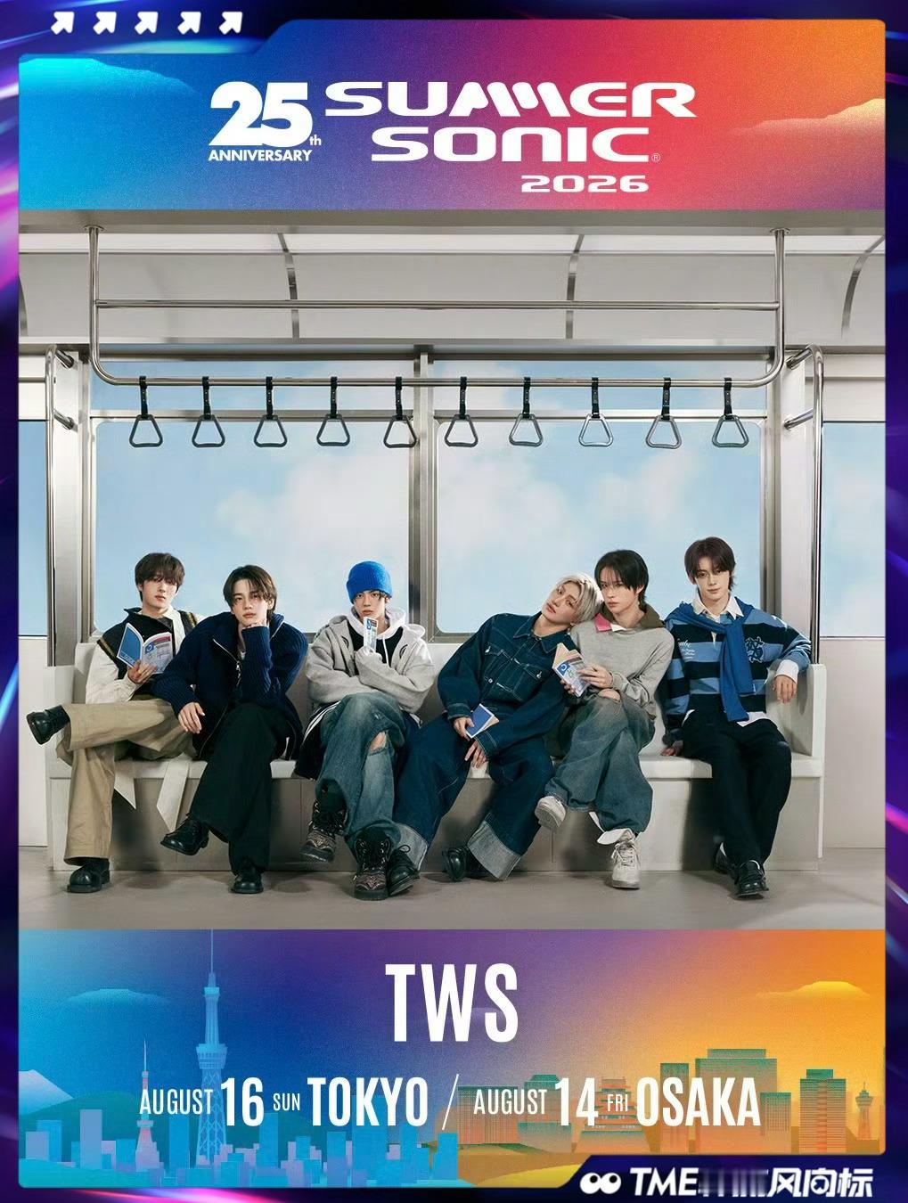 TWS将出演SUMMER SONIC TWS确认出演日本大型音乐节SUMMER SONIC 2026,将分别登上8月14日大阪与8月16日东京两个舞台!TWS的海外活动再迎新突破