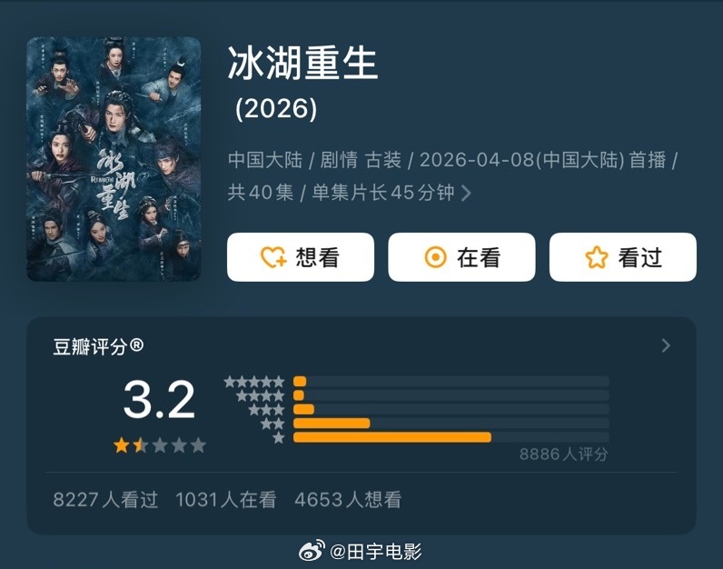 冰湖重生豆瓣3.2天呐!《冰湖重生》豆瓣开分才3.2,截止到目前为止,是今年评分最低的国产剧。《楚乔传》好好的一个影视ip,续作口碑热度下滑成这样,白瞎了前作的积累,可惜了李昀锐的表演态度,诸葛玥这个角色,他演的真挺不错。