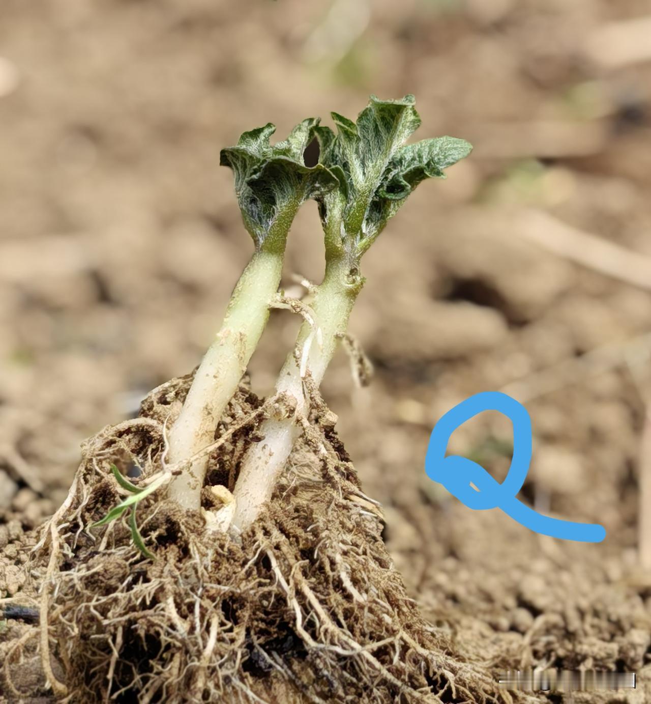 这是因为,土豆芽是从母薯体上生发的,芽基紧扒母薯,出芽同时就扎根,不管是掰还是拔,都会动摇母薯——土豆苗期要控水,不能浇水,刚出苗的时候土壤必疏松,你拔,是拔不动的,硬使蛮力,那就会把母一起拔出来。