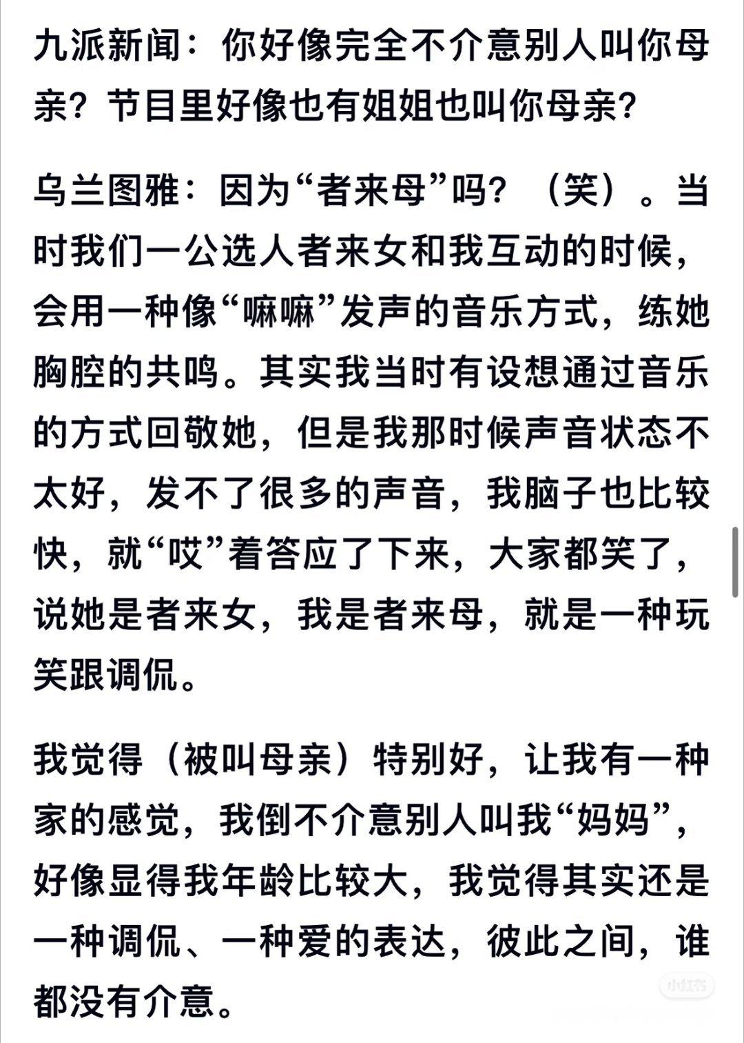 乌兰图雅回应被叫者来母乌兰图雅不介意被叫妈妈 好真诚的乌兰图雅! 回应被叫者来母