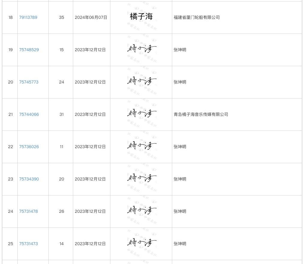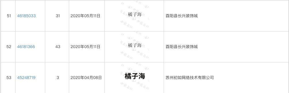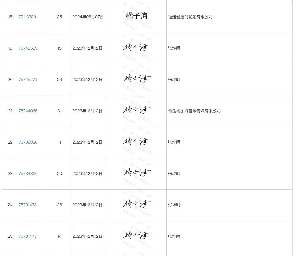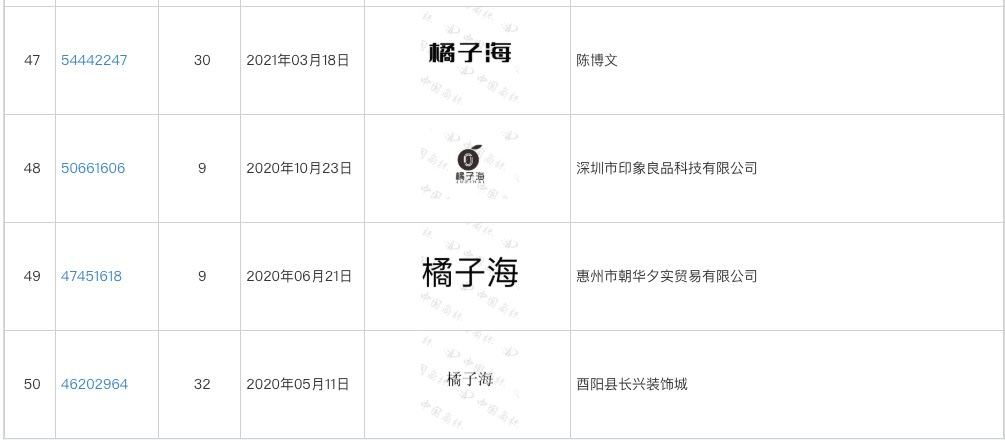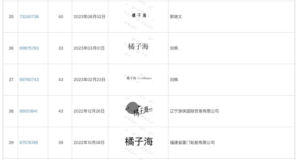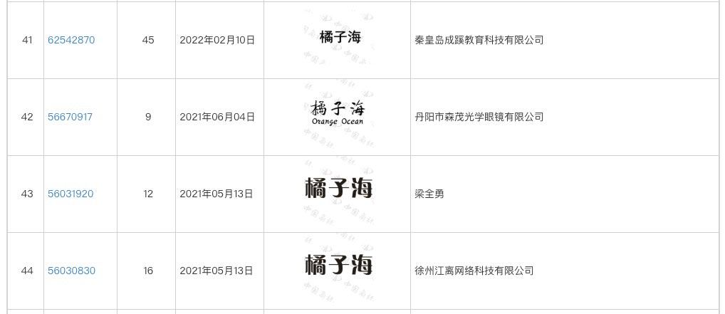 持有橘子海商标的有几十个主体,想问问这个橘子海乐队有手机颜色领域的商标吗?橘子海
