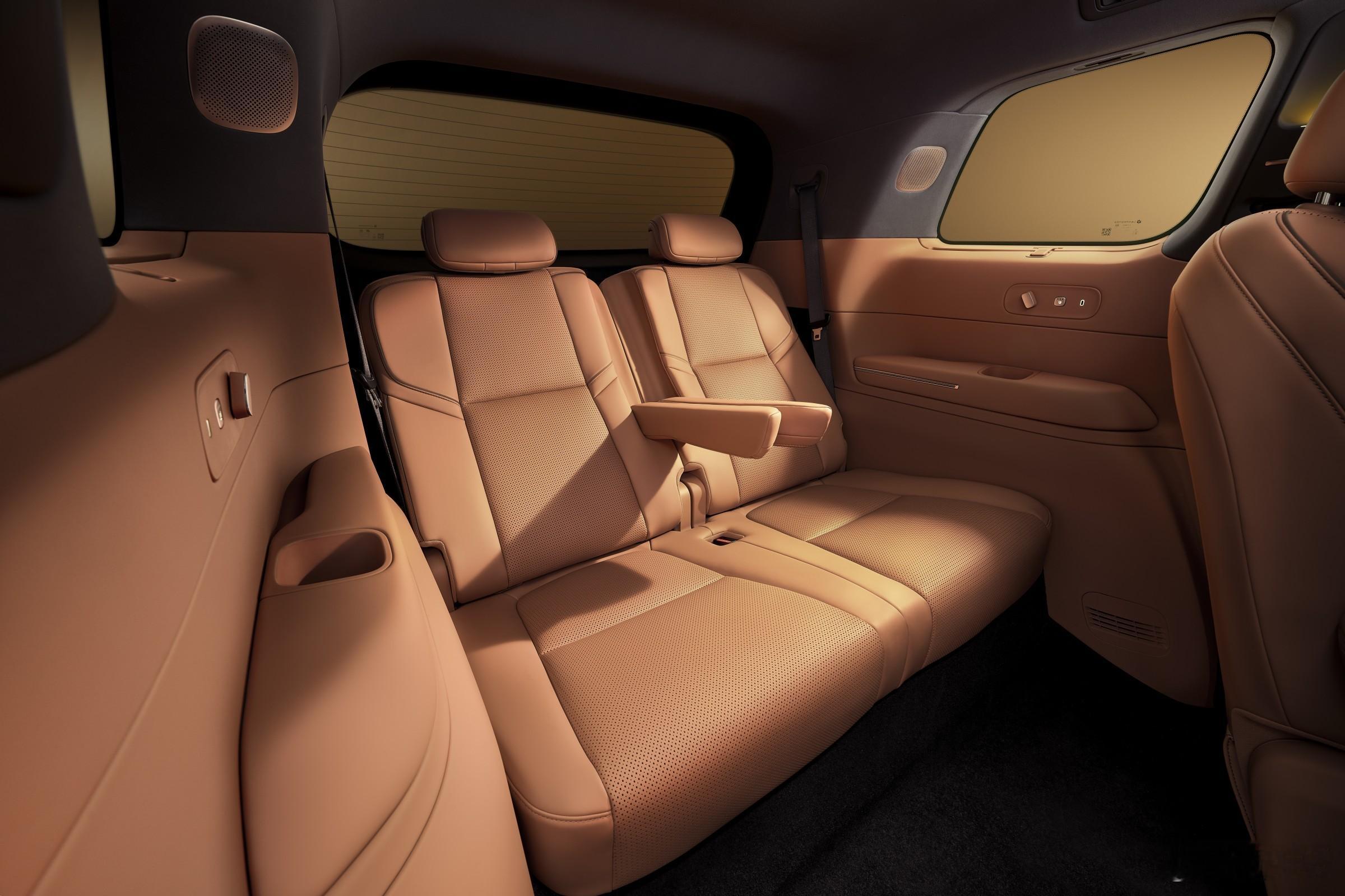 🛋️ 百万级舒适配置二排120°零重力座椅:支持通风、加热、8点按摩;七座版一键切换“大床模式”,三排靠背支持131°无级调节;全系标配双腔闭式空气悬架 + CDC主动阻尼控制系统;车规级冷暖冰箱(容积8.1L)、电动侧滑门、2.7㎡超大全景天幕+遮阳帘;内饰采用 半苯胺头层真皮 + Nappa真皮方向盘,质感媲美百万豪车。